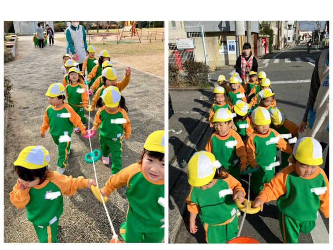 道中には猫じゃらしを触ってみたり、ごみ収集車に手を振ったり周りに興味津々のお友達👀