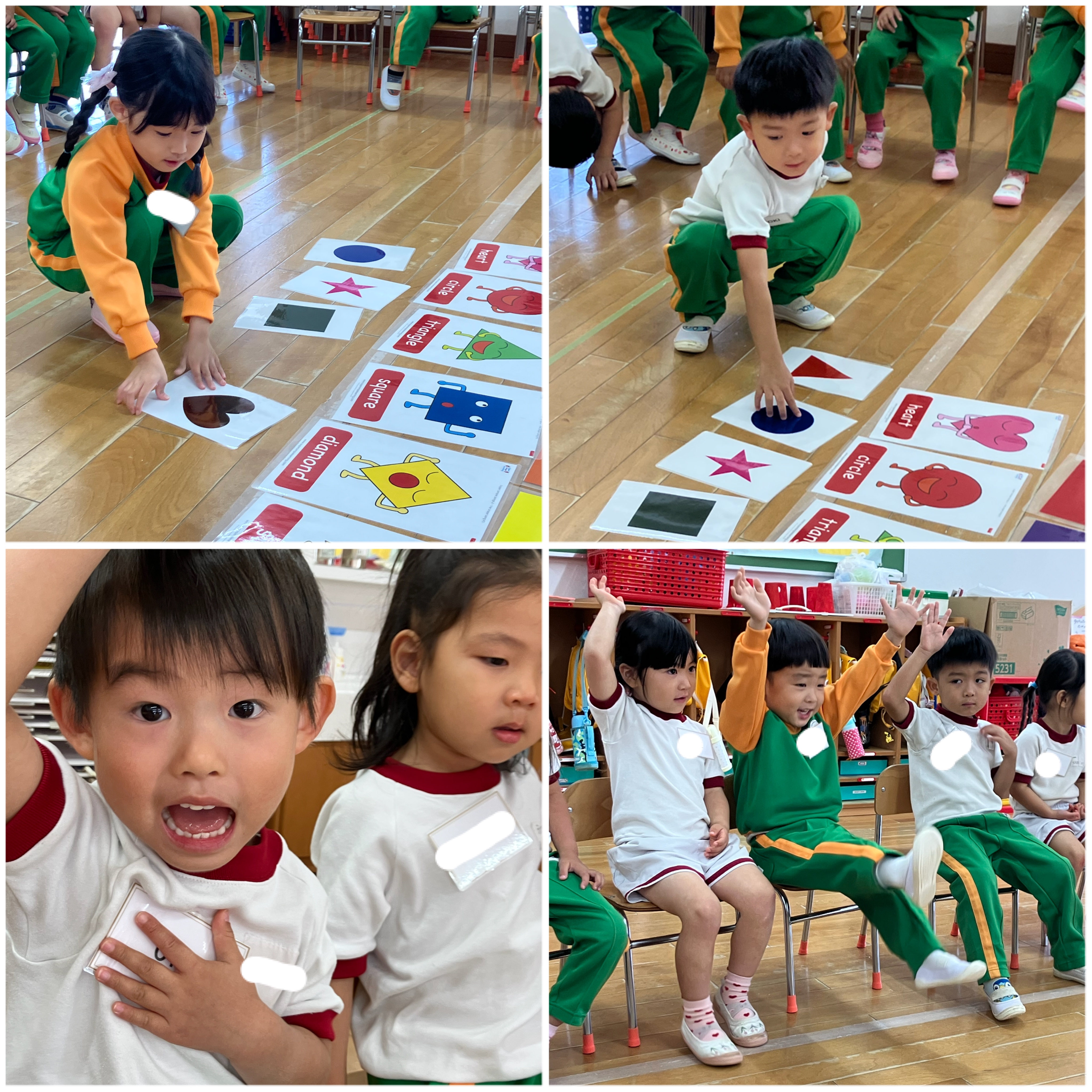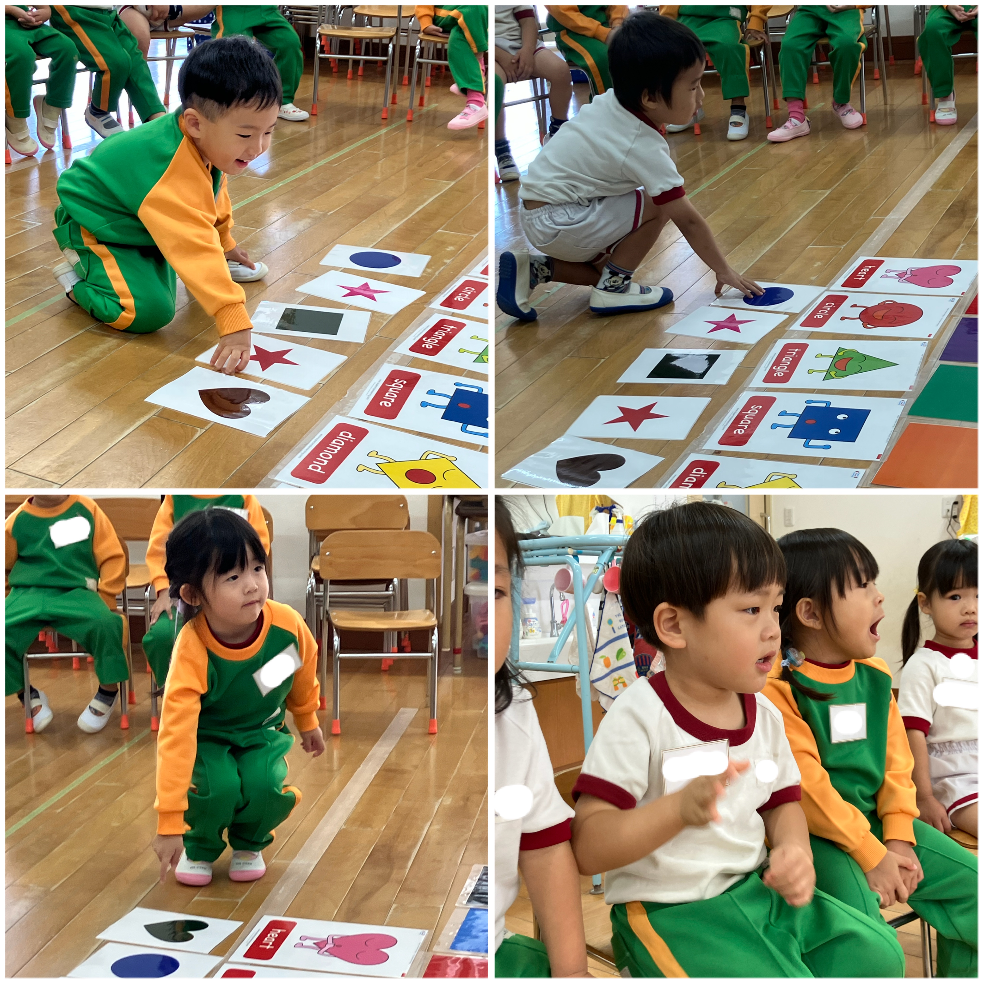 色々な形、色を少しずつ覚えお友だちとの会話の中でも「グリーン」「イエロー」と話している声が聞こえてきます👂🏼🎶