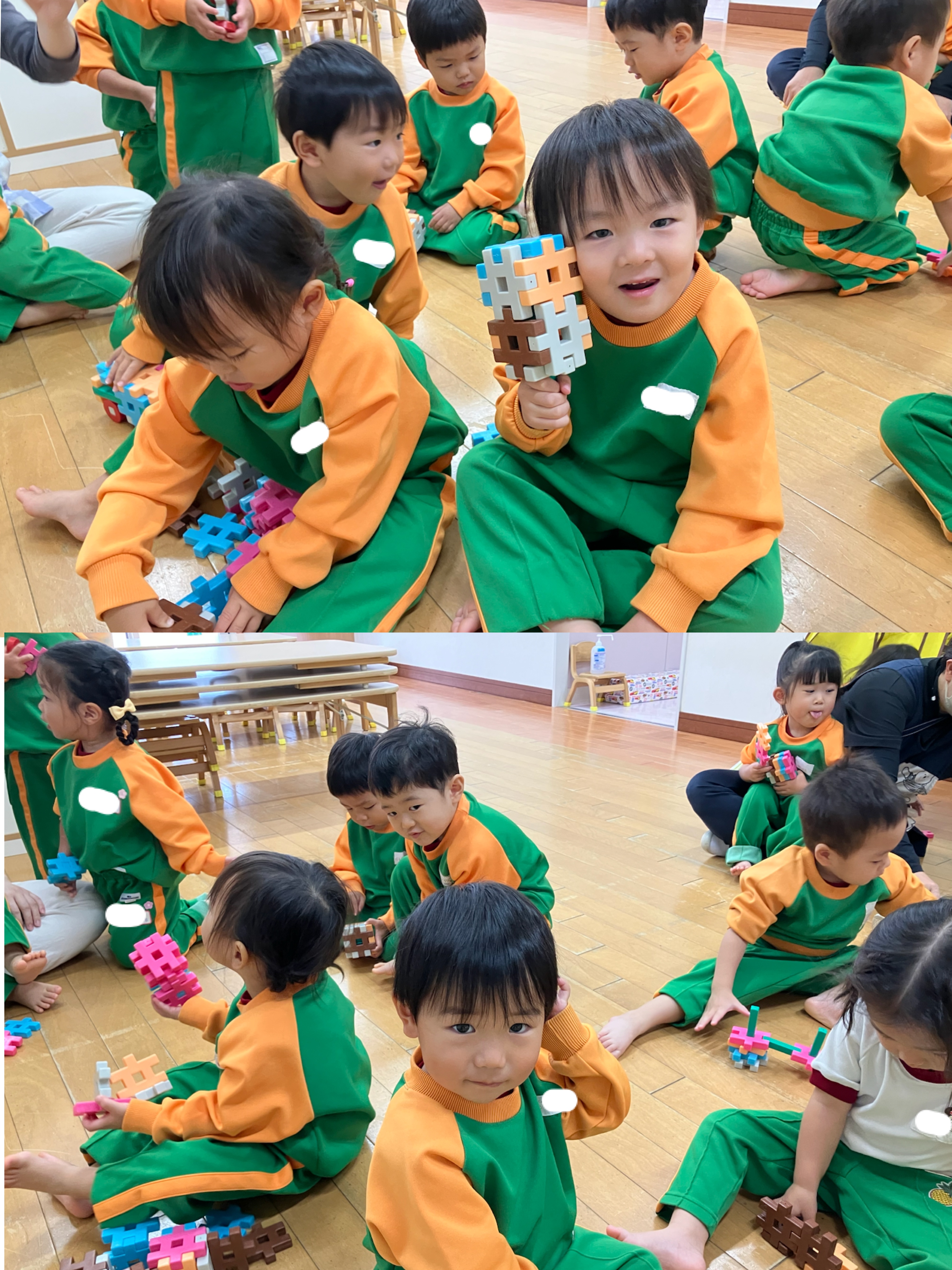 また、アイスクリームのトッピングを貼ることを朝から伝えていたので、お制作前にブロックでアイスを作り待ちきれない姿も見られましたよ👀💓