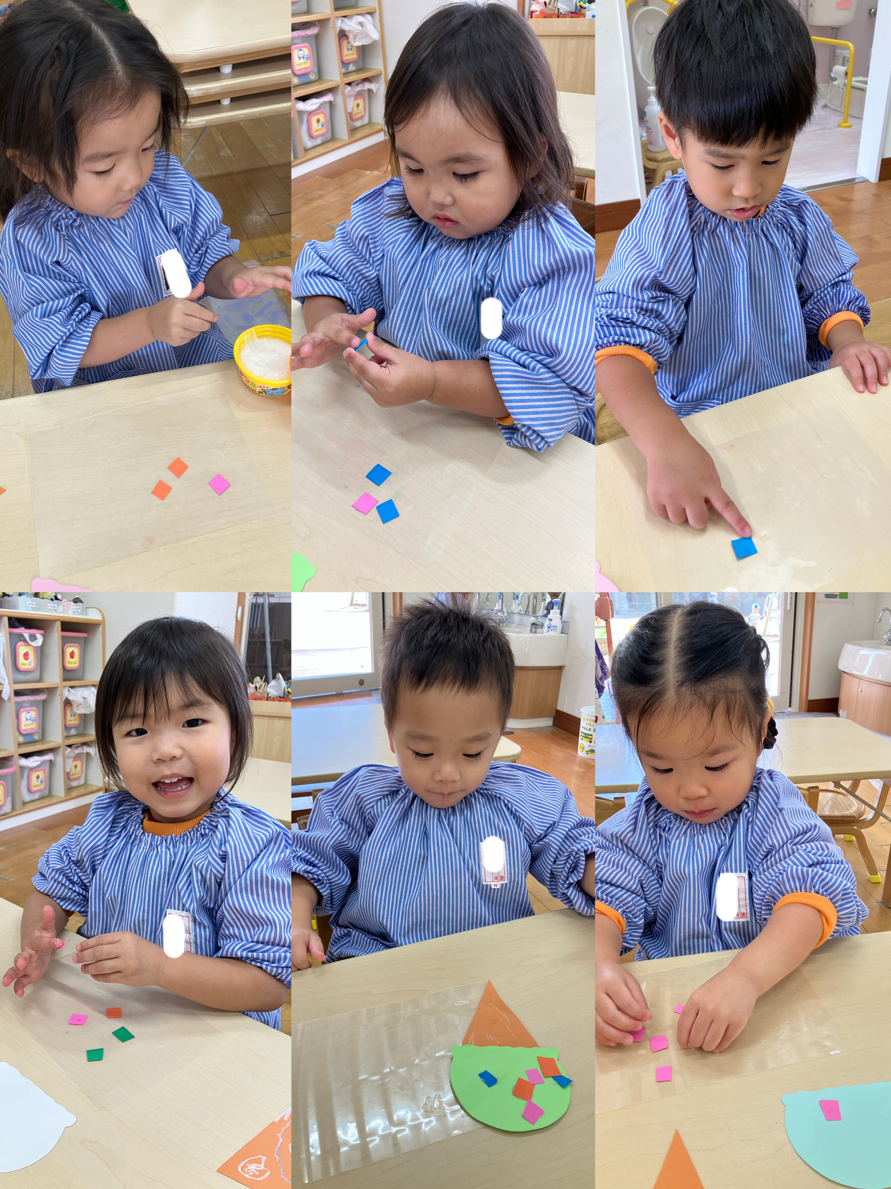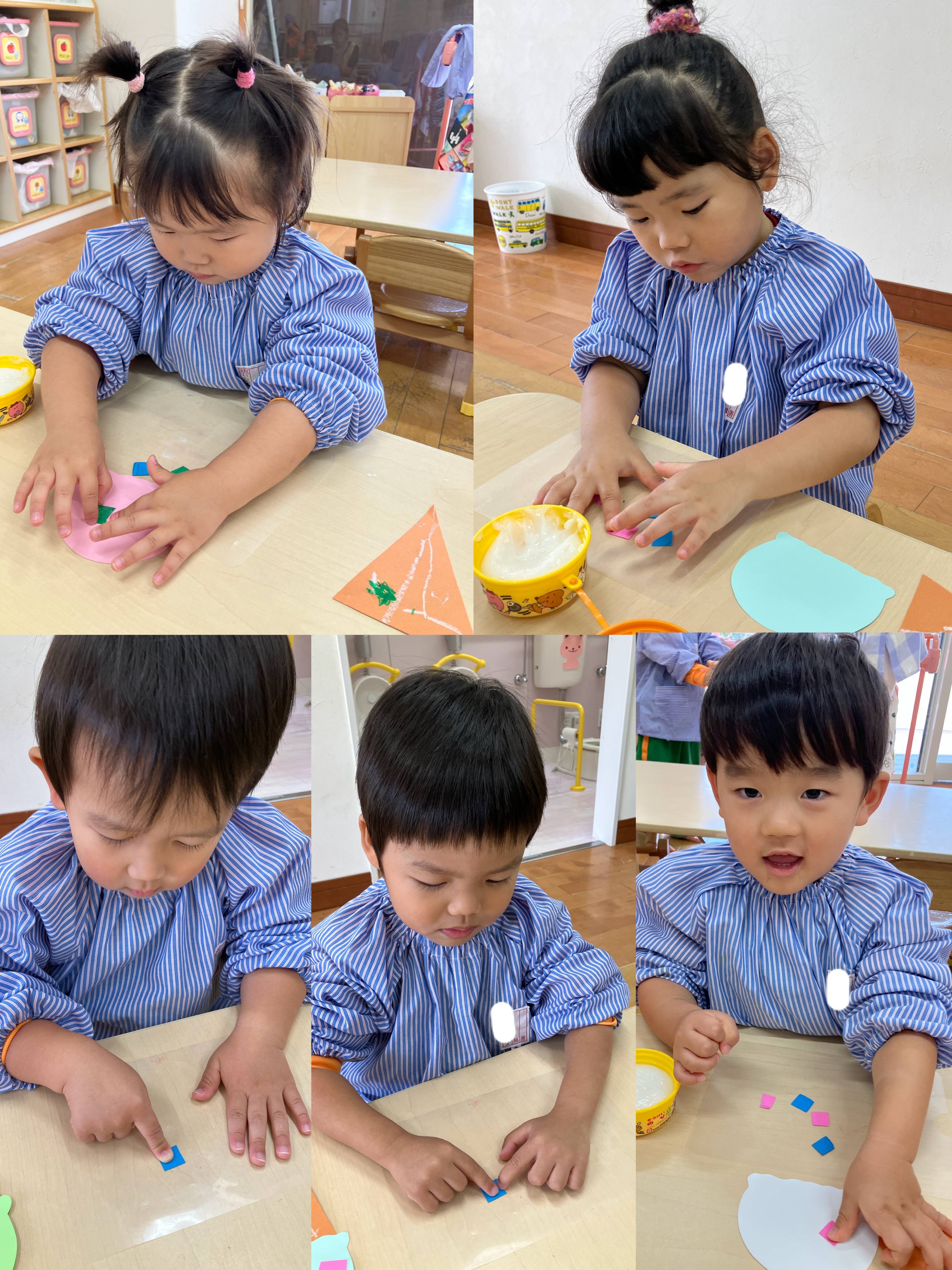 「1の指を使うよ☝🏻」「糊はアリさんくらいの大きさだよ🐜」と約束事を伝えると、意識しながら取り組んでいた子どもたち☺️アイスの味決めからノリノリで楽しんでくれていました🎵
