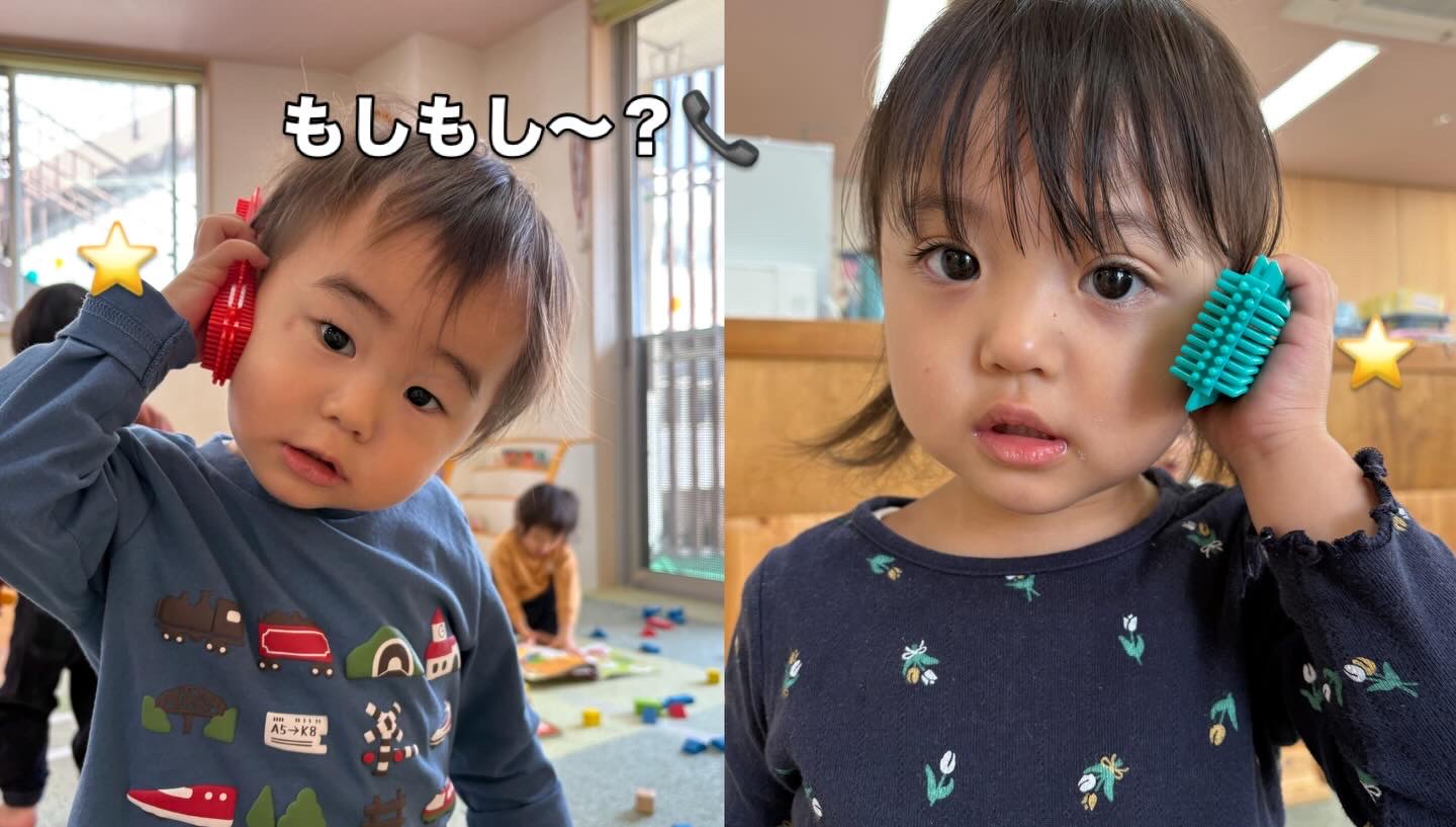 その後は園庭で探索をしてみたり🍂、お部屋で電話ごっこをしてみたりと、お友だちや保育者と楽しい時間を過ごしたりすぐみさんでした🐿️💛