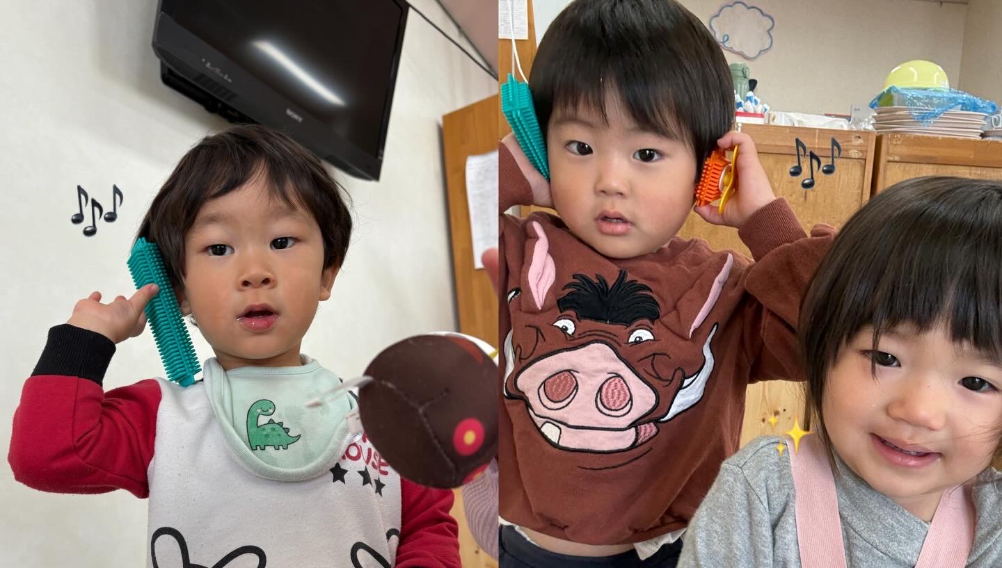 ゆっくり鳴らしてみたり、早く鳴らしてみたりと色々な鳴らし方を楽しむ子どもたち❣️サンタクロースのお歌に合わせて演奏してみると、「リンリンリン♪」と口ずさみながら音を鳴らす姿も見られましたよ🤍