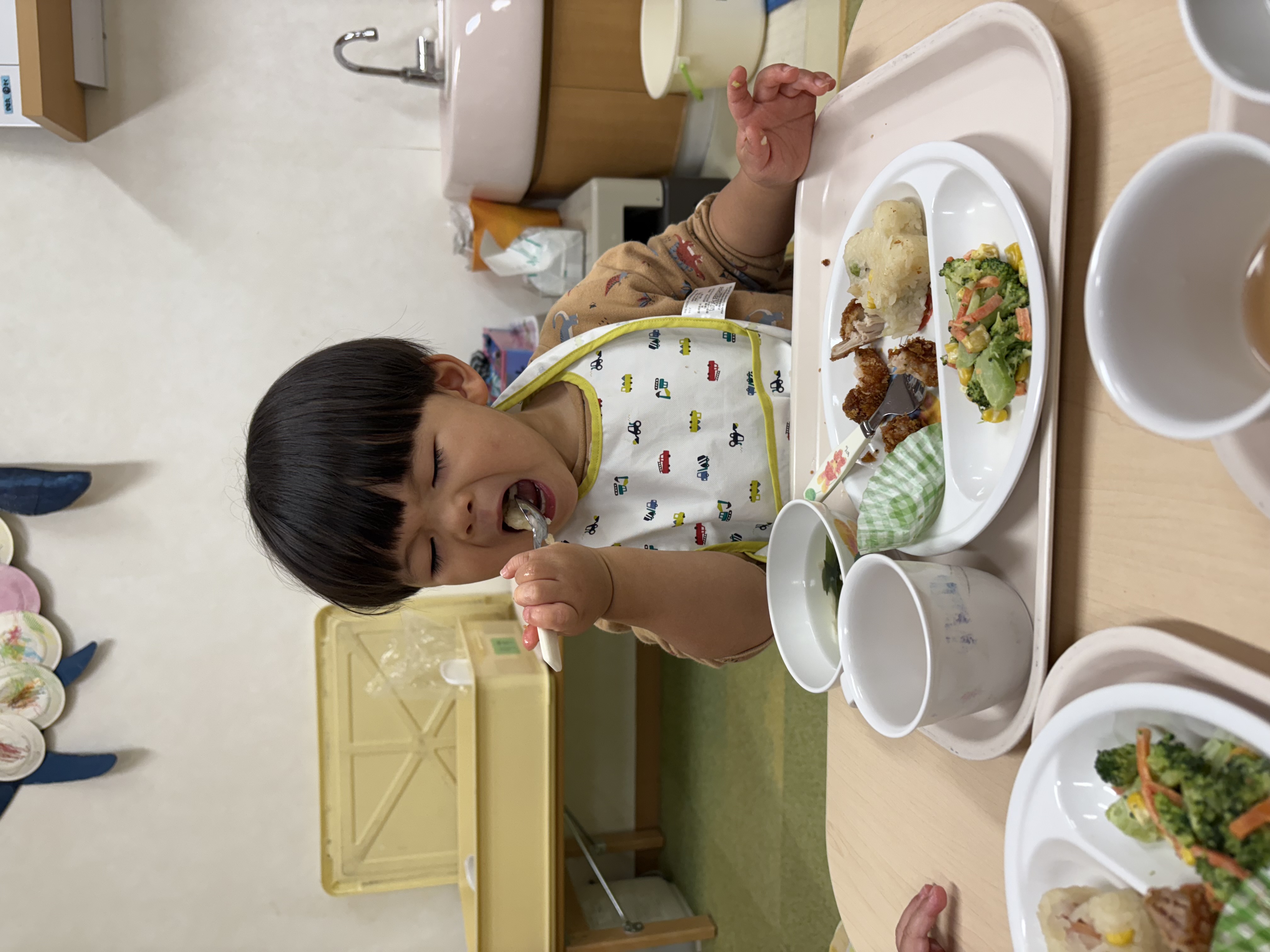 お友だちと「おいしい?」と聞き合い、大きなお口で美味しそうに頬張る姿がとても可愛かったです🥰