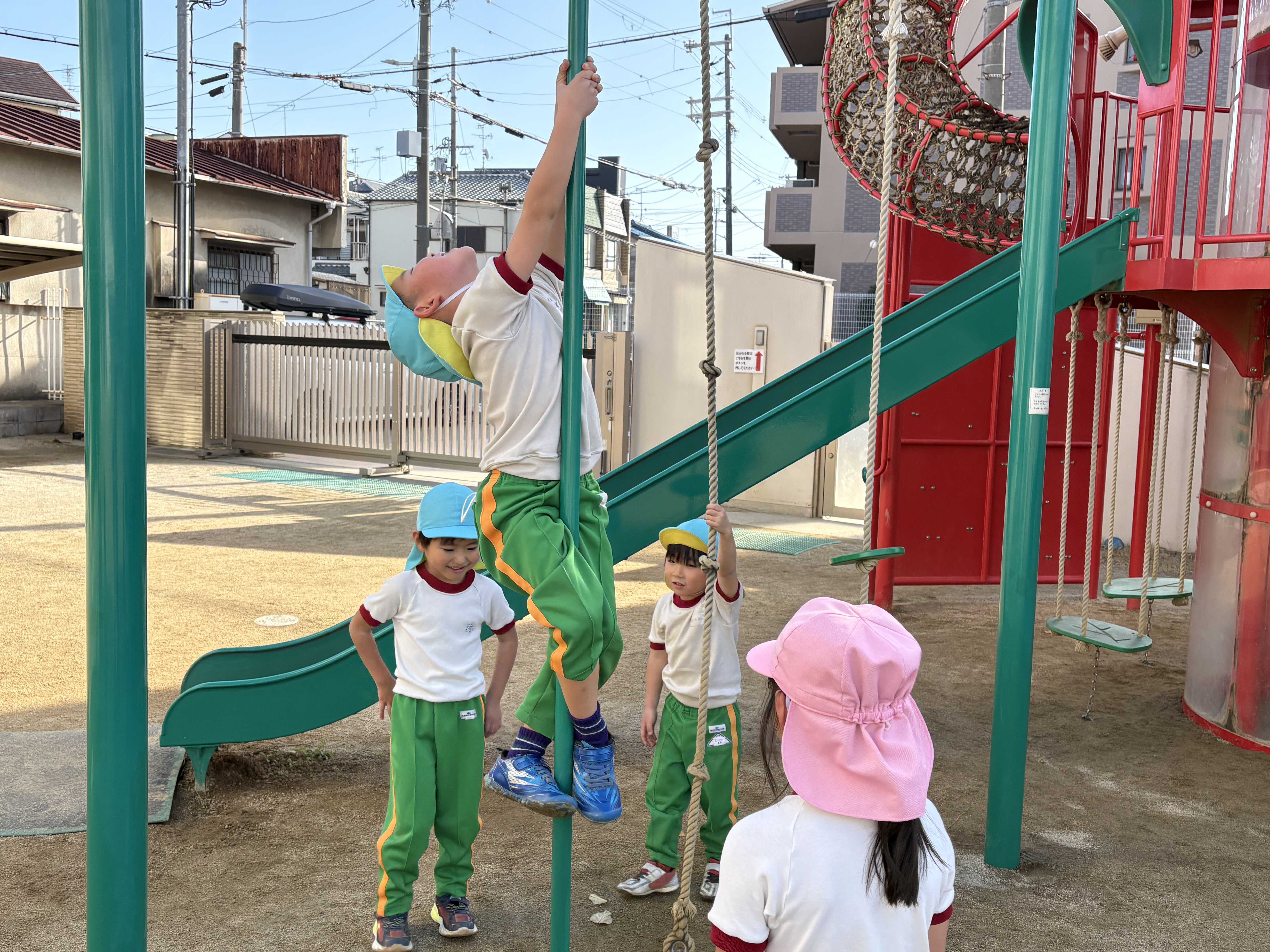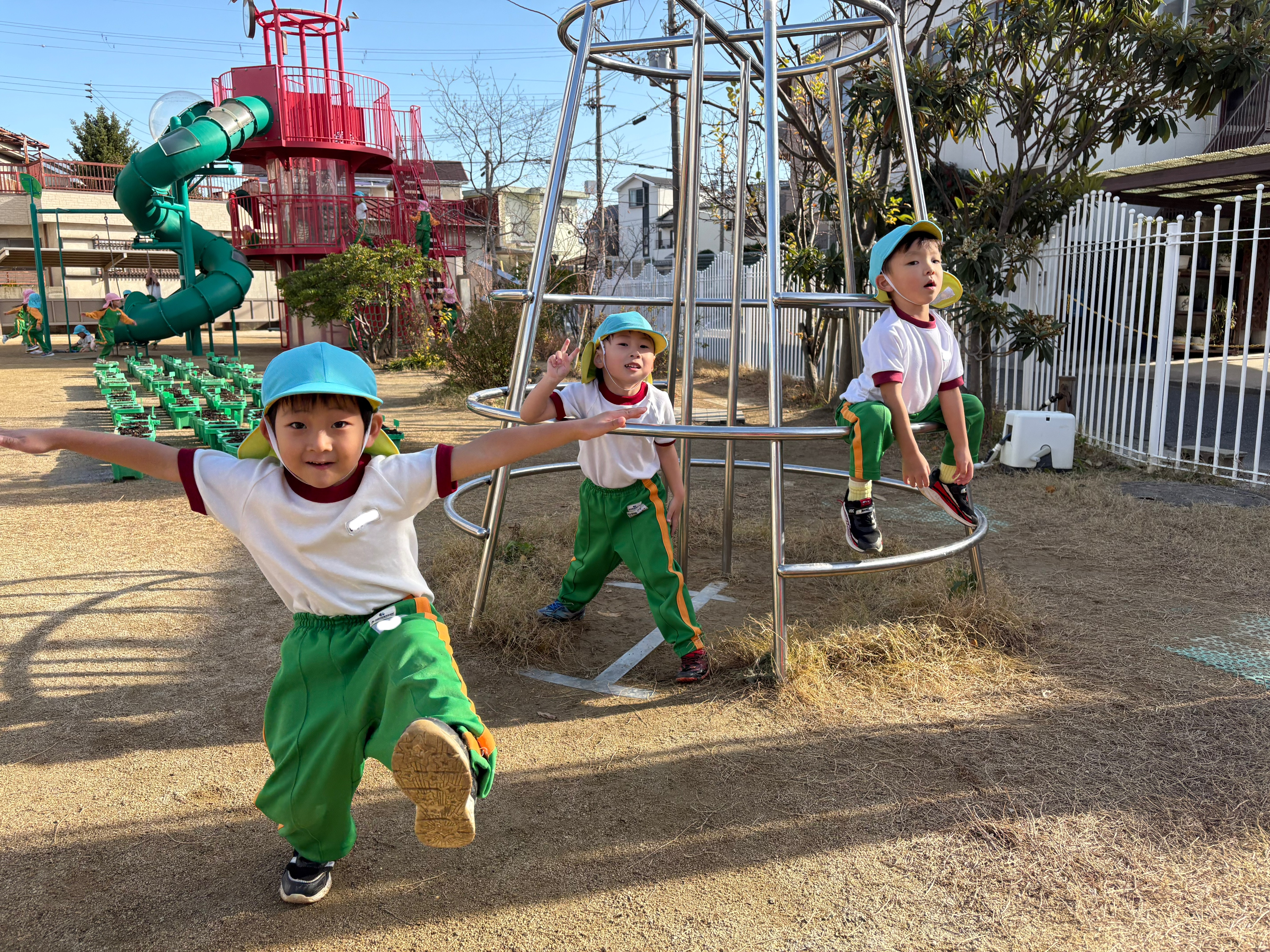 今日も園庭で元気いっぱい遊ぶゆきぐみの子どもたちです🌱