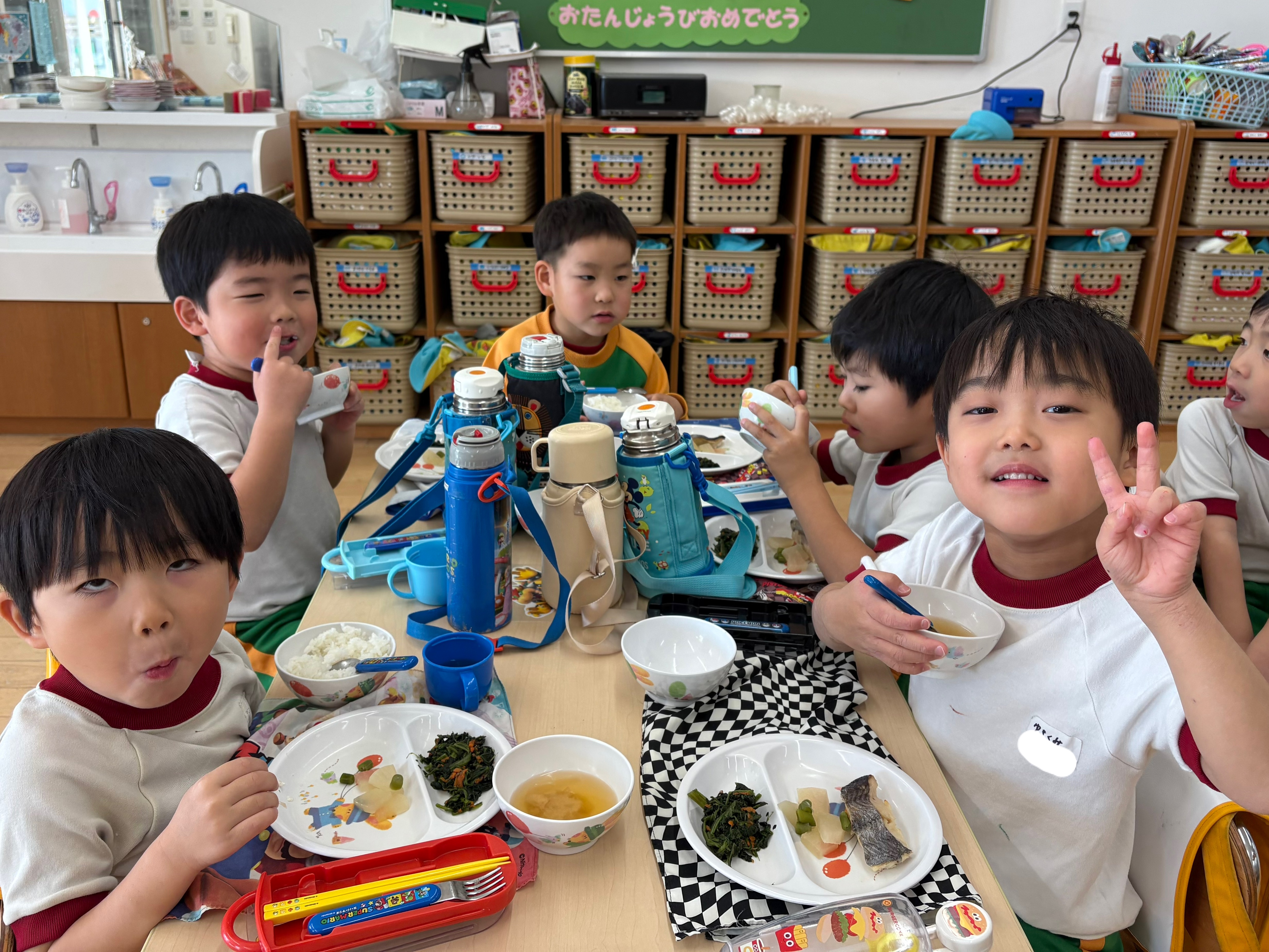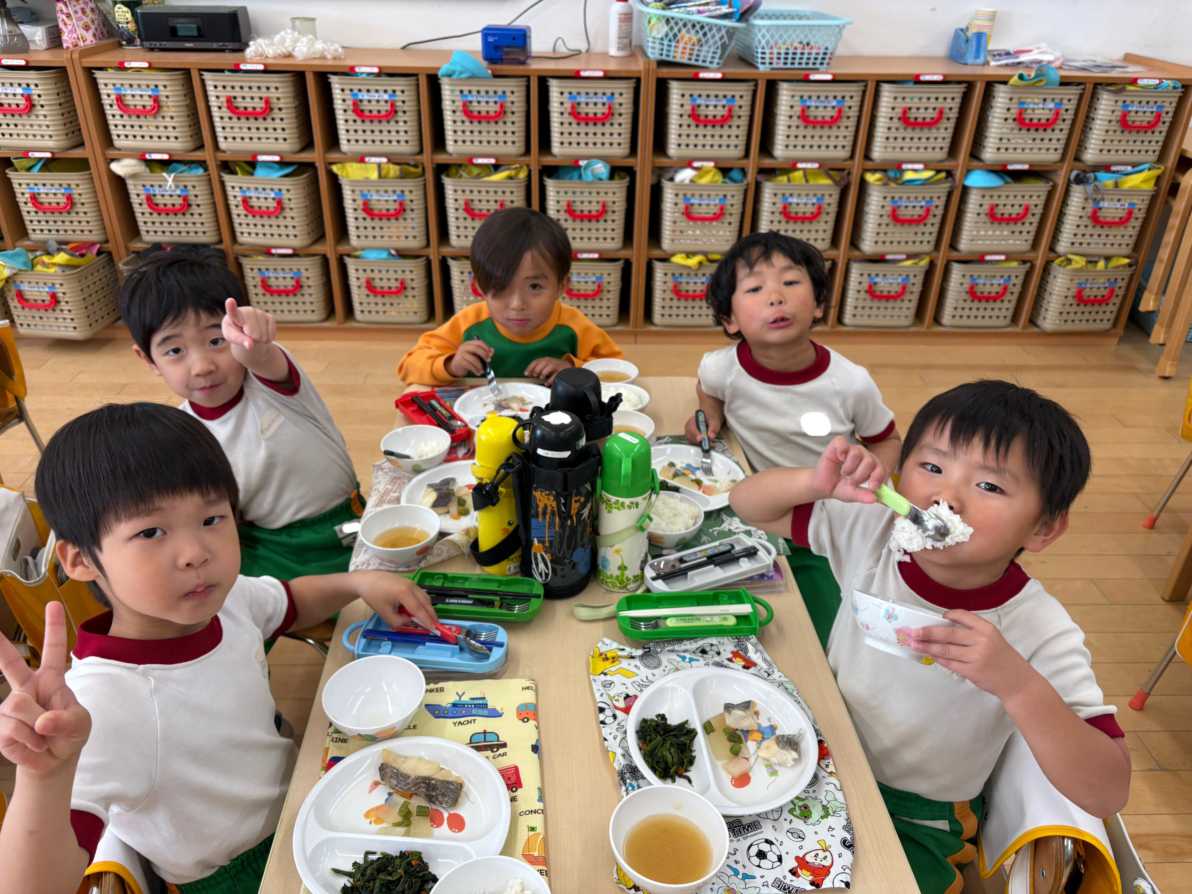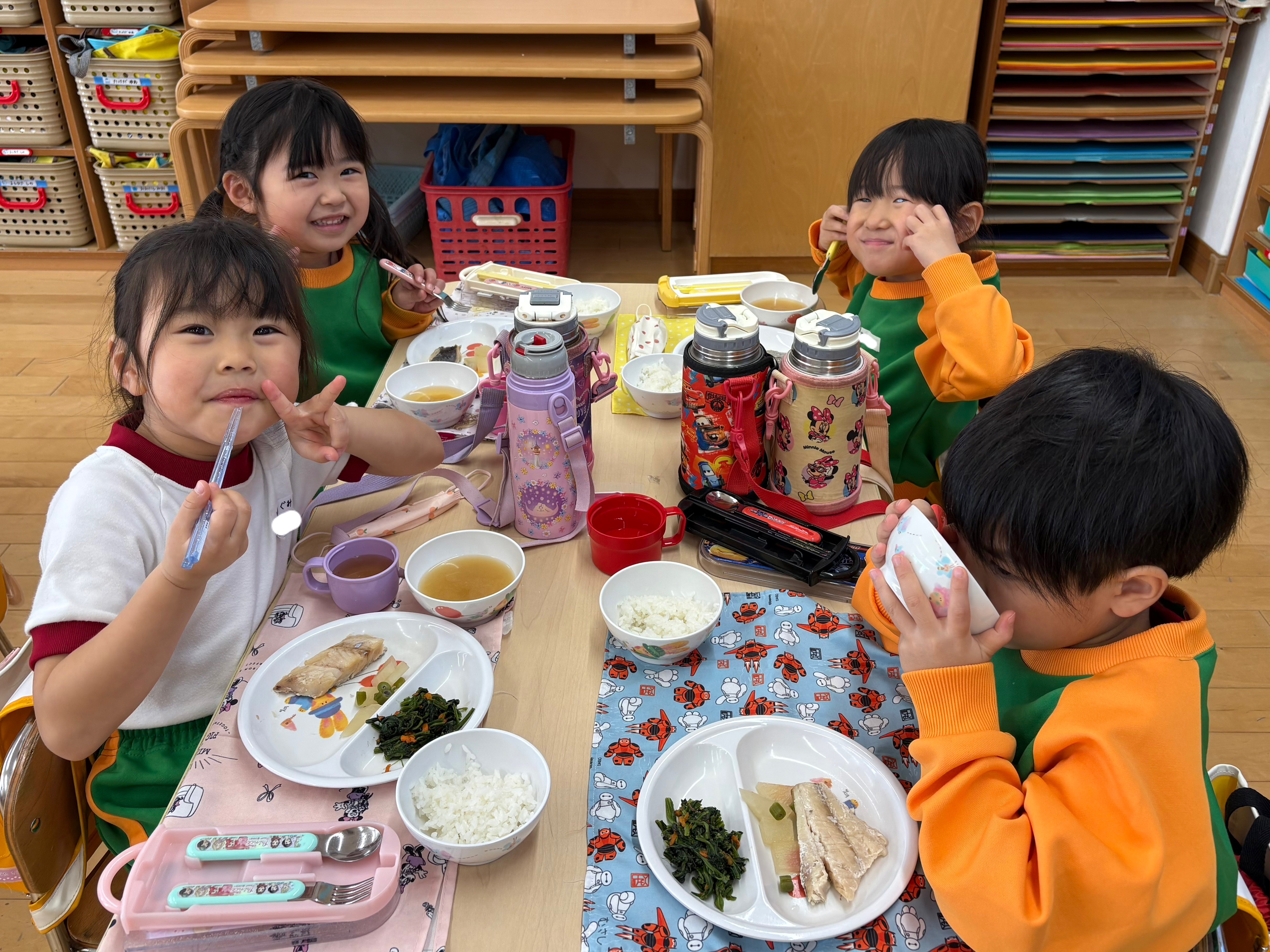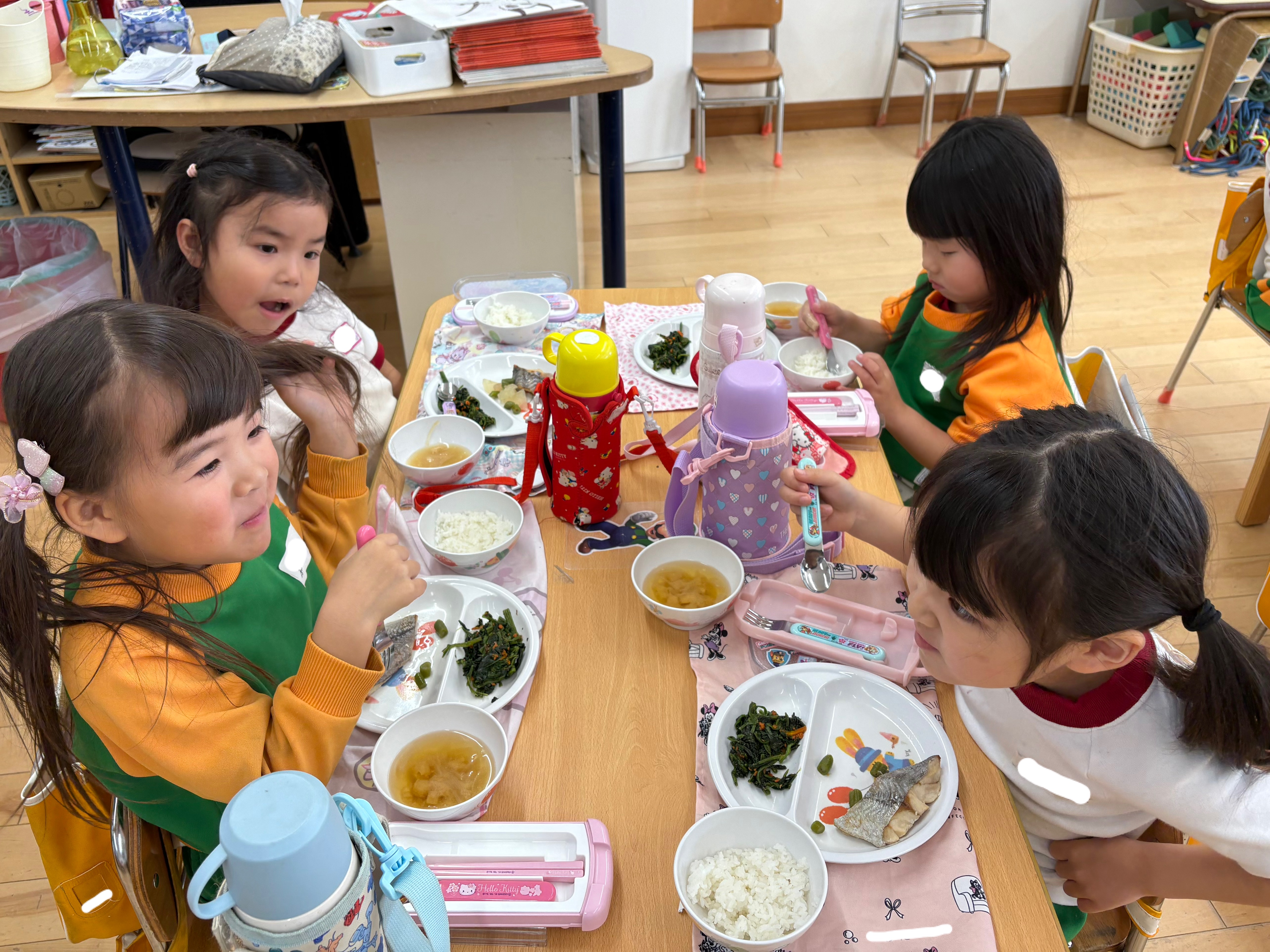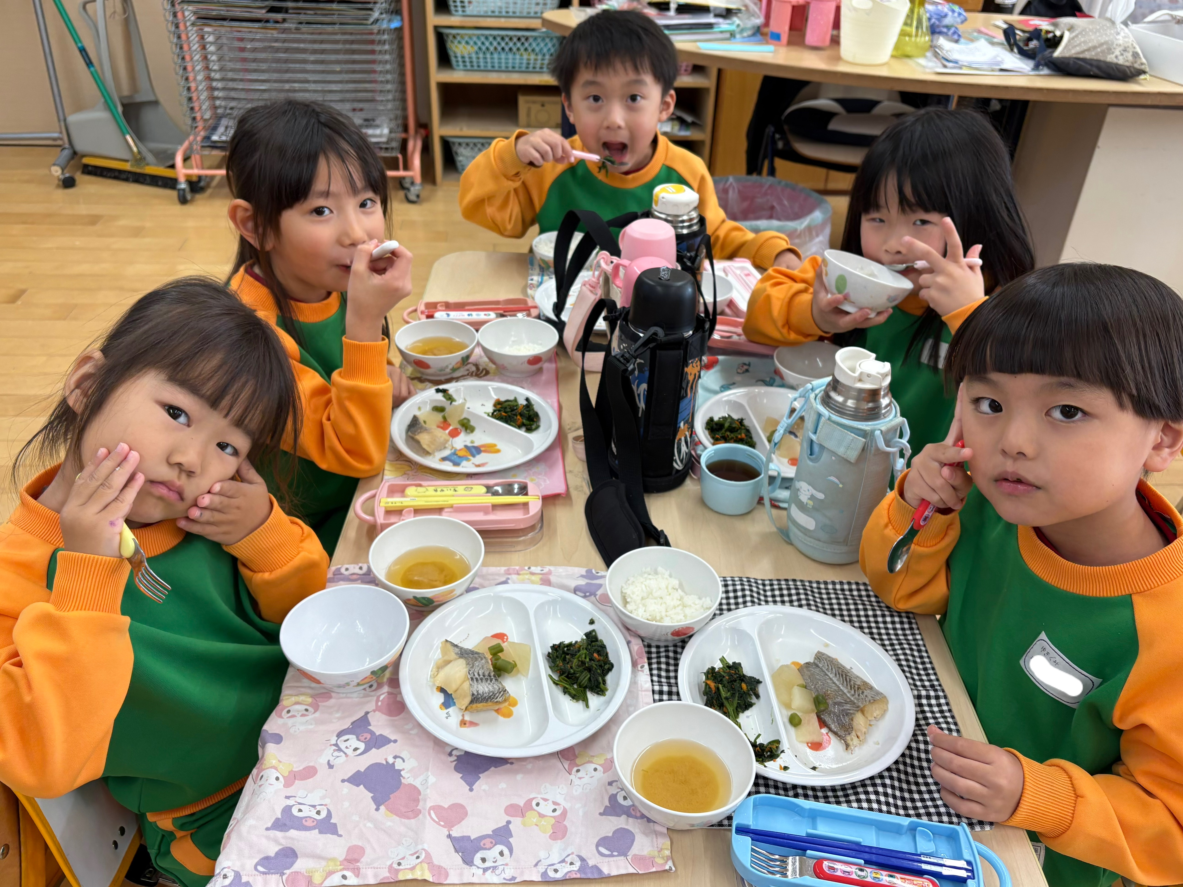 「もうすぐクリスマスやから、サンタさんに来てもらえるように、、!」と、給食の苦手な野菜ももぐもぐ😖