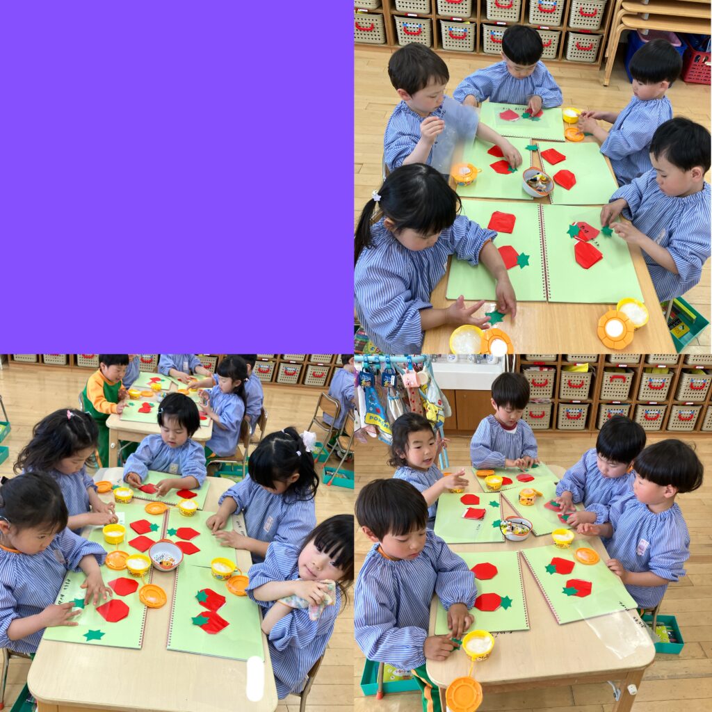 その後は制作をしました。「いちご大好き!」「なんかトマトに見える〜👀」とお友だちと楽しみながら頑張っていましたよ🍓