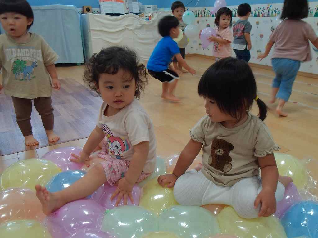 風船の入った“風船マット”では、上に乗り寝転んだり、みんなで「バンバン!」と言いながら叩く姿も、、、♡