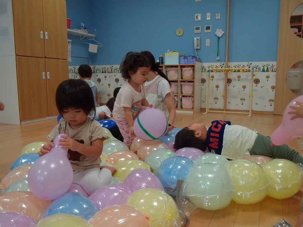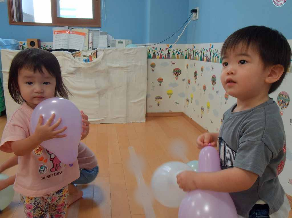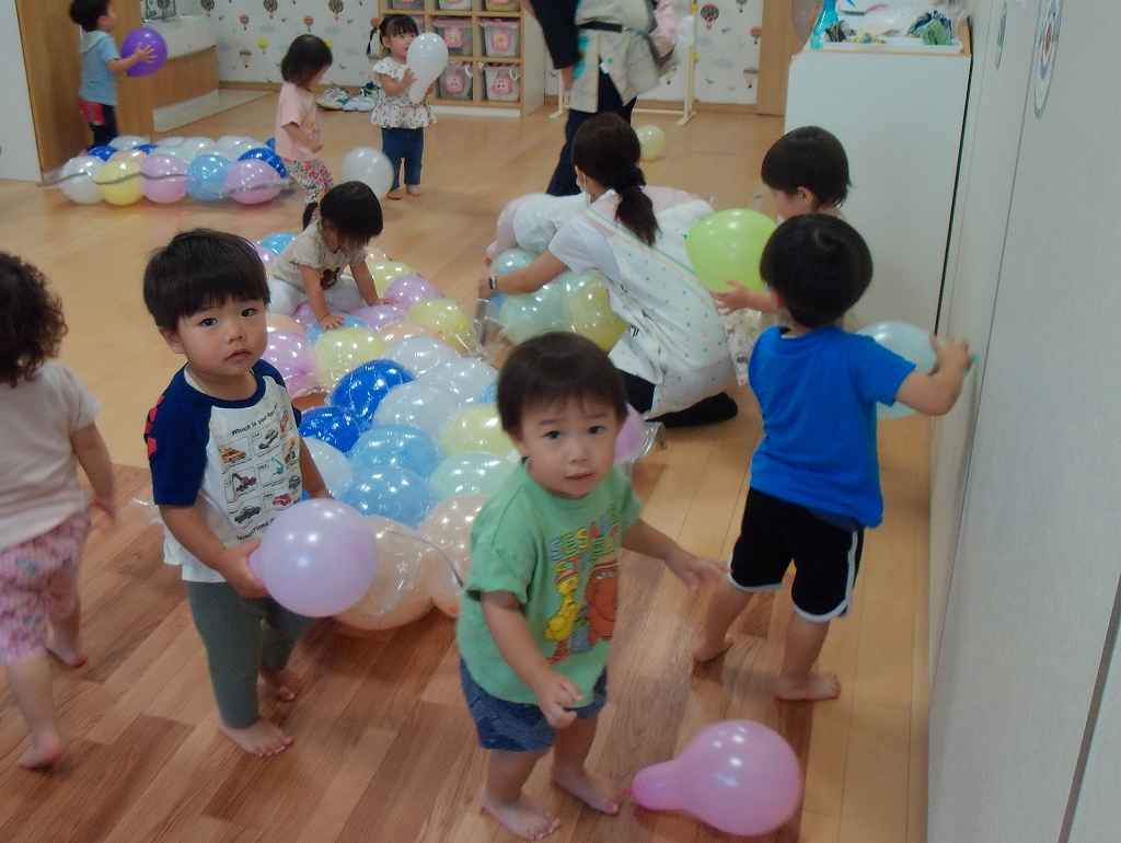ふわふわと飛ぶ風船を追いかけたり、ポンっと叩いてみたり様々な遊び方をしていましたよ☆