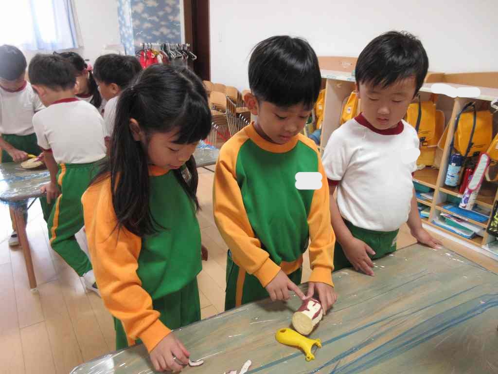 「さつまいもだいすきやから頑張る!」「これ夜までかかりそう~」と言いながら最後まで丁寧に皮を剥くことが出来ました!