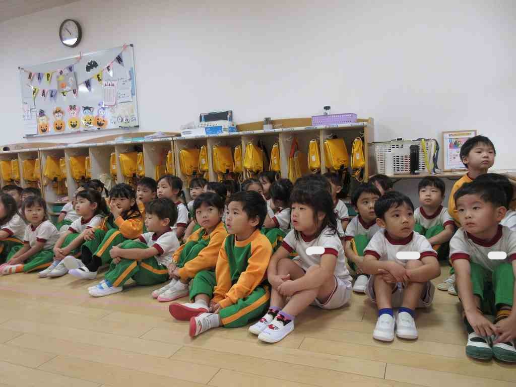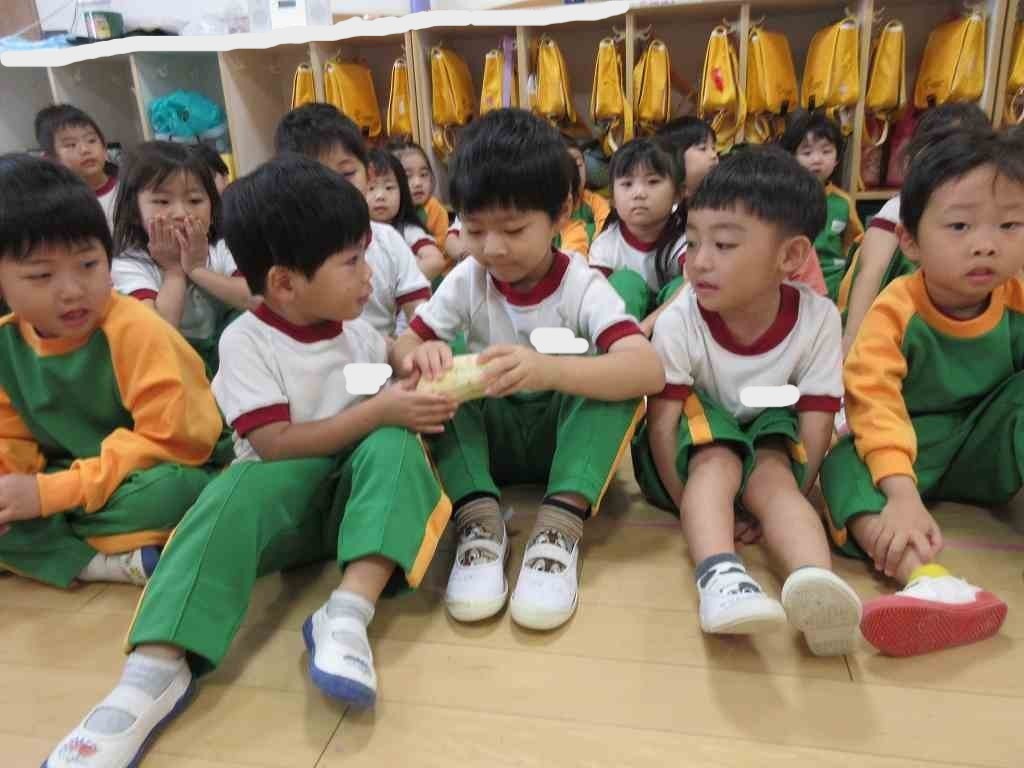 年少さんはさつまいもについてのお話を聞き、クイズでさつまいもについて楽しく学びました!実際にさつまいもを触ったり、匂いを嗅いでみて、「バナナの匂いがする!」「りんごのにおい!」と感想を言い合っていました♪
