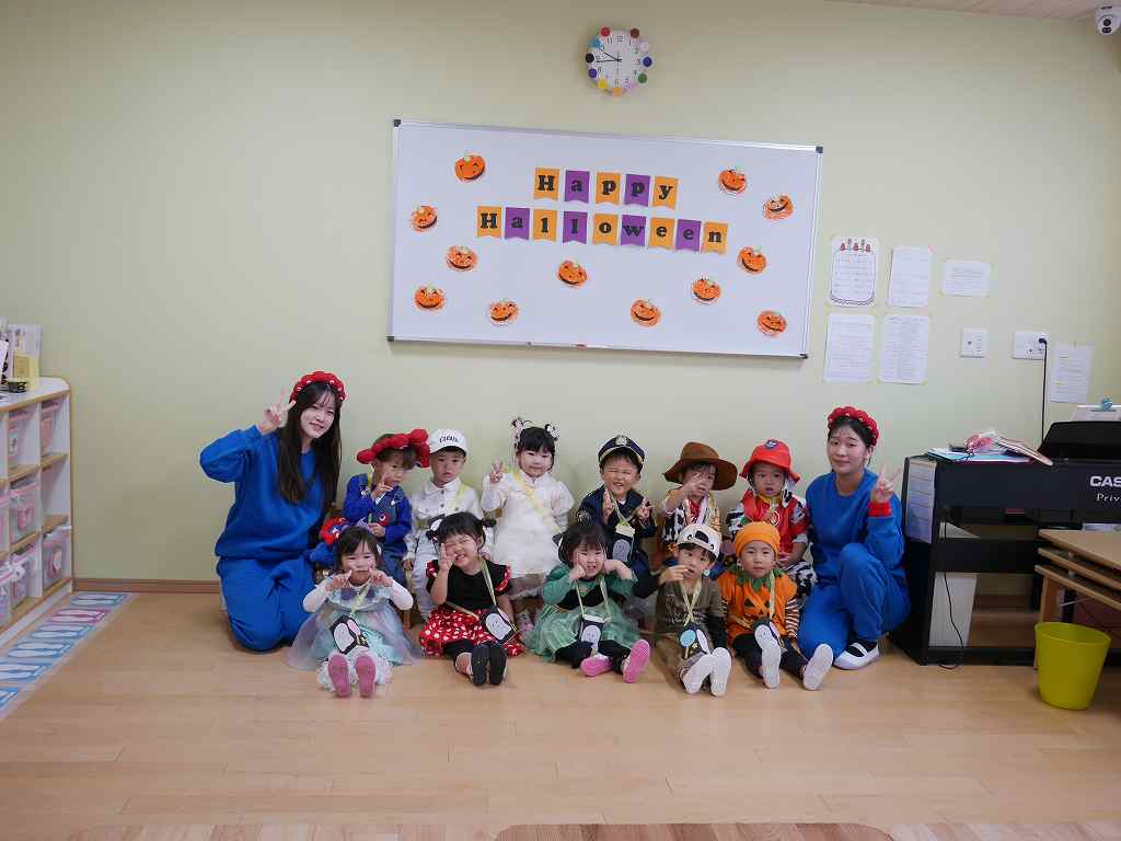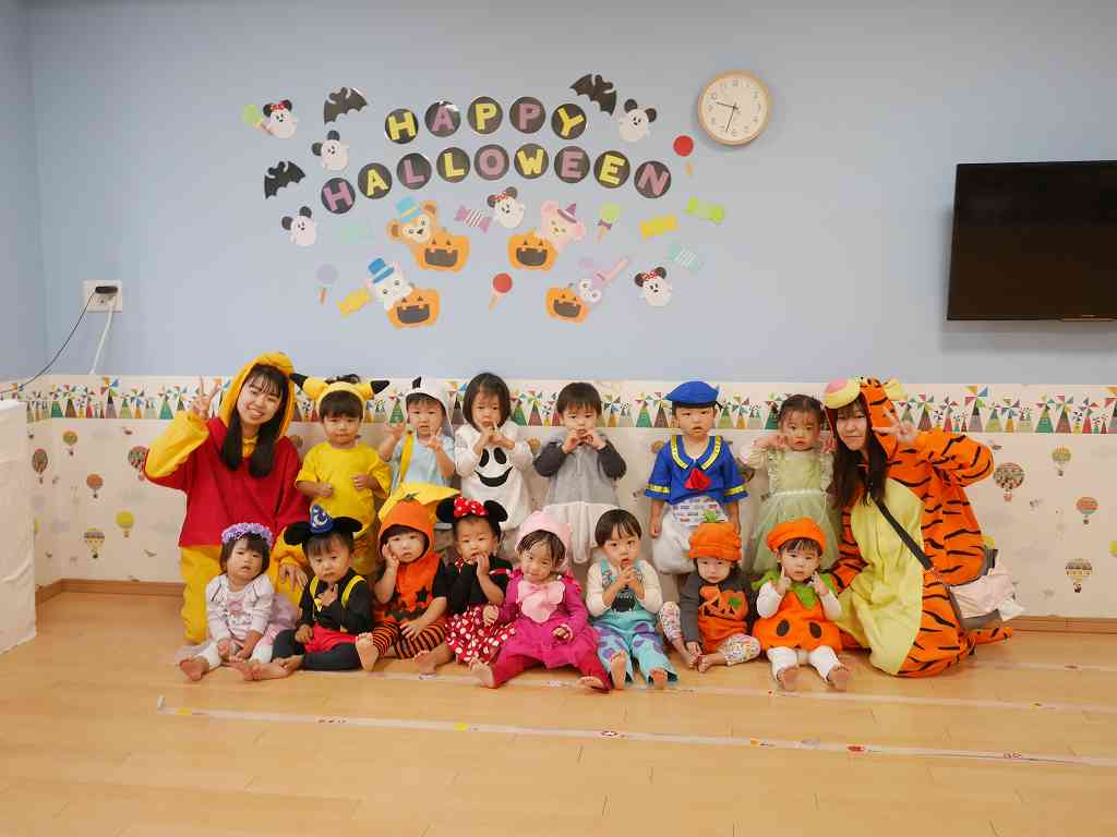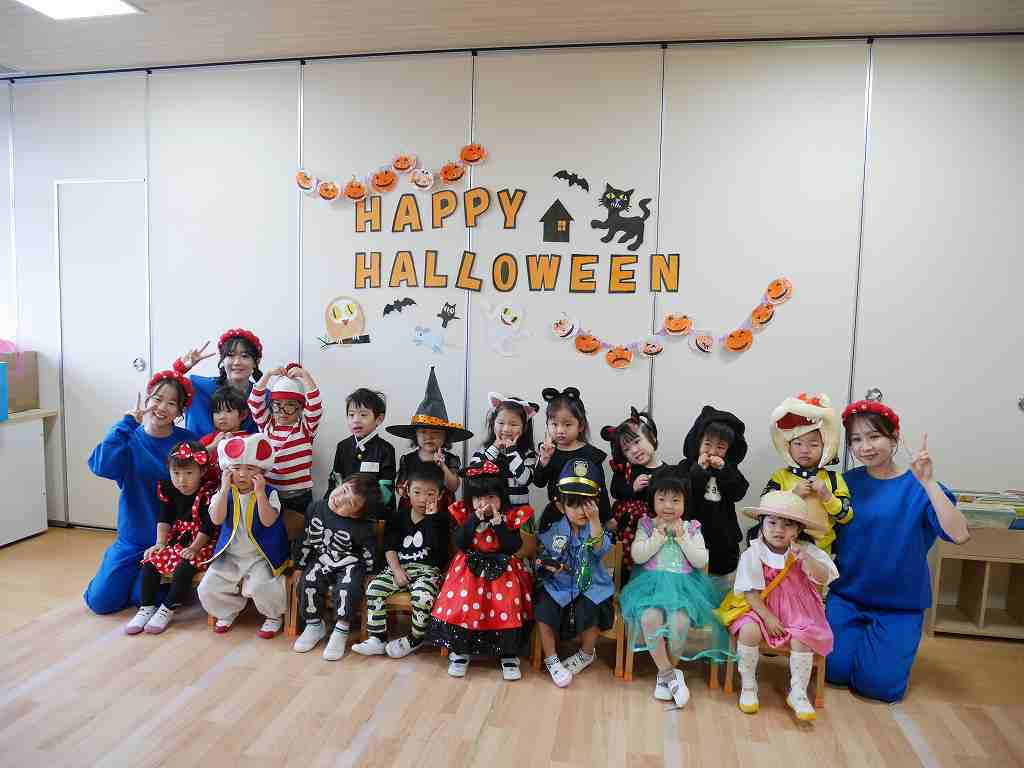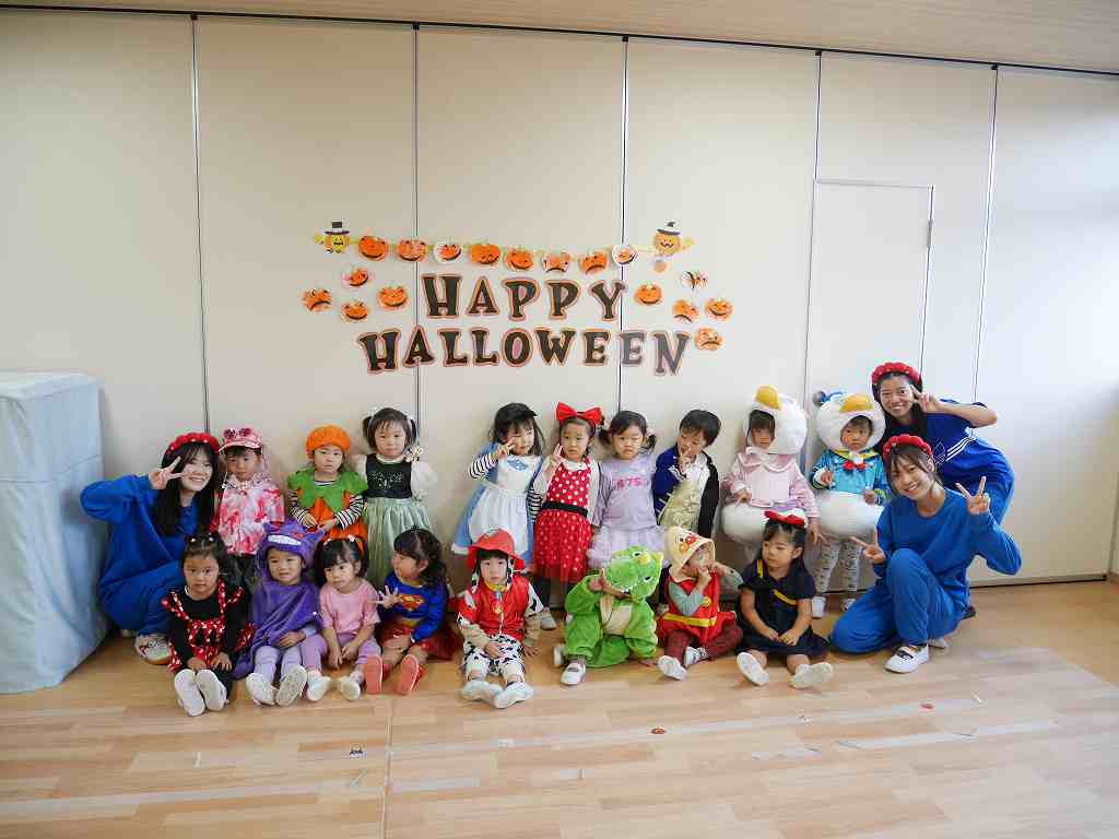 初めてのハロウィンパーティーのお友達もいて、いつもと違う雰囲気やみんなの仮装に驚いていたお友達もいましたが、最後までパーティーを楽しみました♪