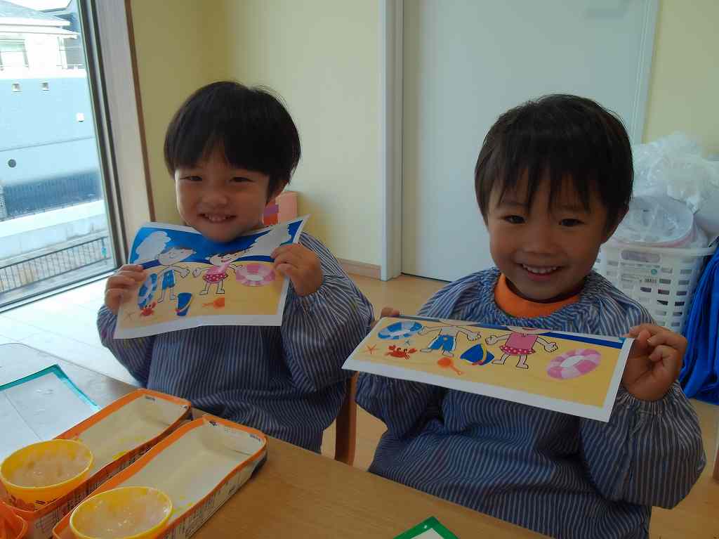 海や浮き輪を見て「海行った!」「プールも行った」と沢山の夏の思い出をみんなで振り返りました!お話している姿が笑顔いっぱいでとっても楽しい夏を過ごしたんだなとほっこりしました^^♡