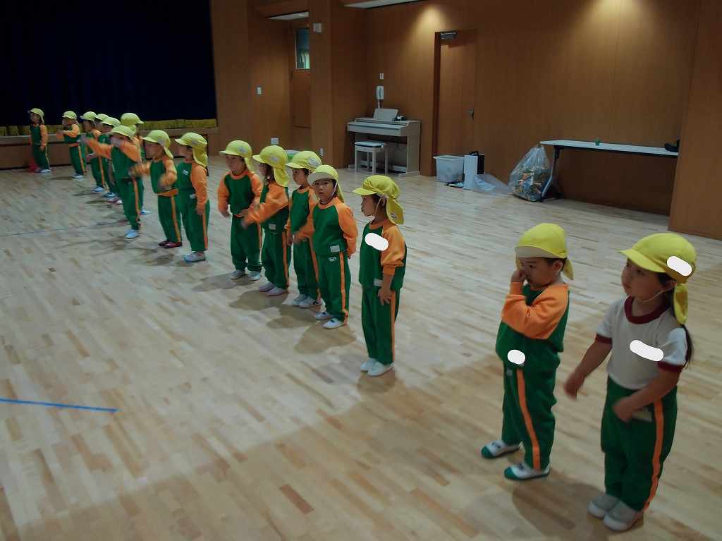 最初は音に合わせて踊るだけで必死なきりん組さんでしたが、この一か月でとっても上手になりました♡登園してくるとすぐに「うんどうかいれんしゅうする!」「ママとパパくるっていってた」「ダンスがんばる」と楽しみにしているきりん組さんでした。