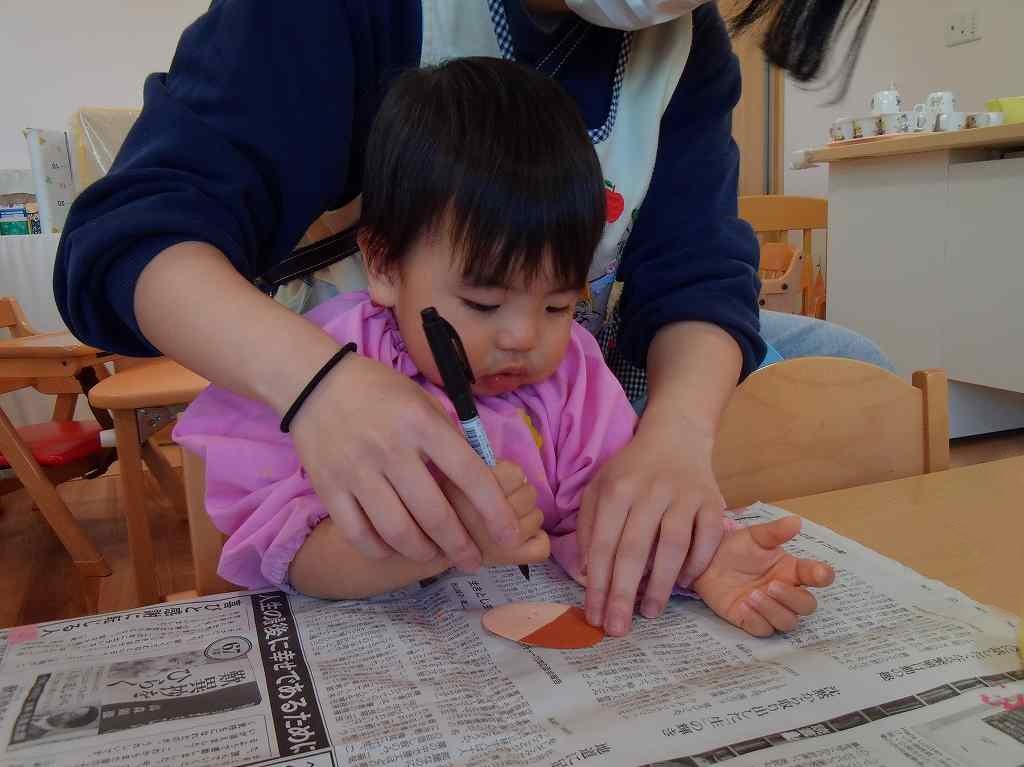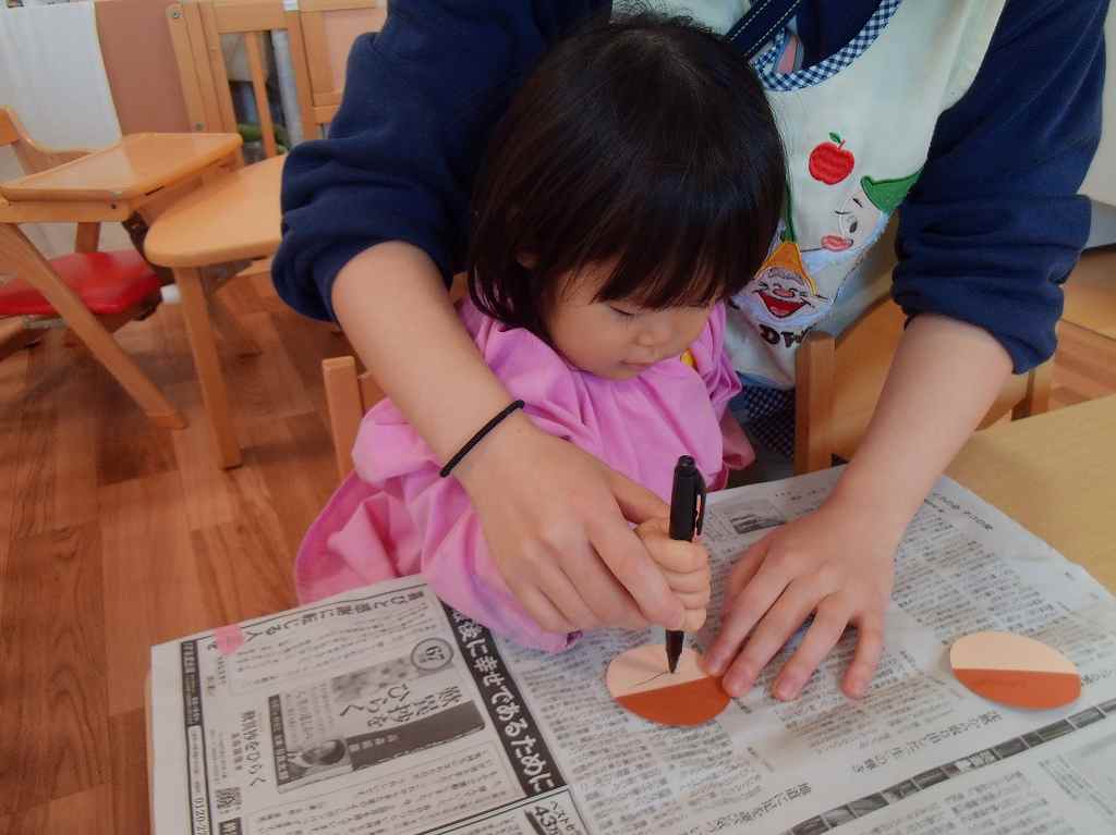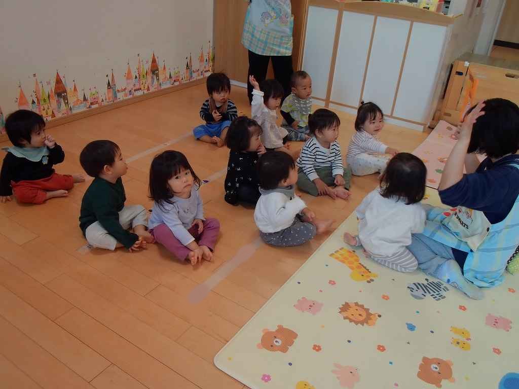 こんな制作をするよ!とお話を聞いている時から興味津々のひよこ組さん!