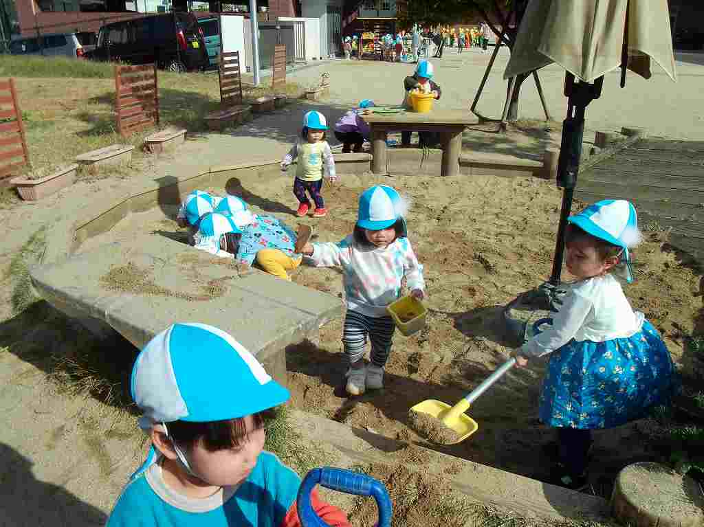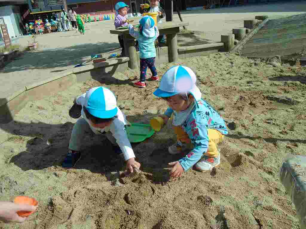 砂あそびをしたり、走ったりと、園庭を思いっきり楽しむあひる2組さんです☆