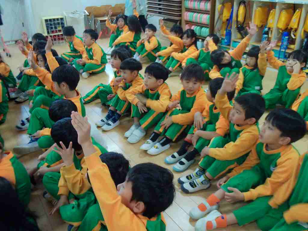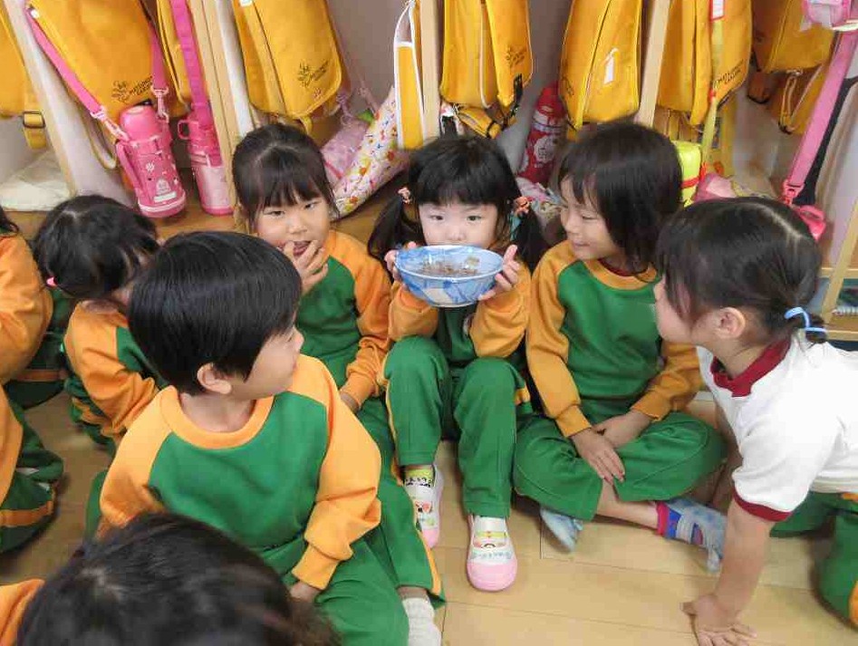 お汁やご飯、おかずはどの位置に置くかな?と質問されると「真ん中!」「(体操服の)お名前の方!」と答えていた子ども達!