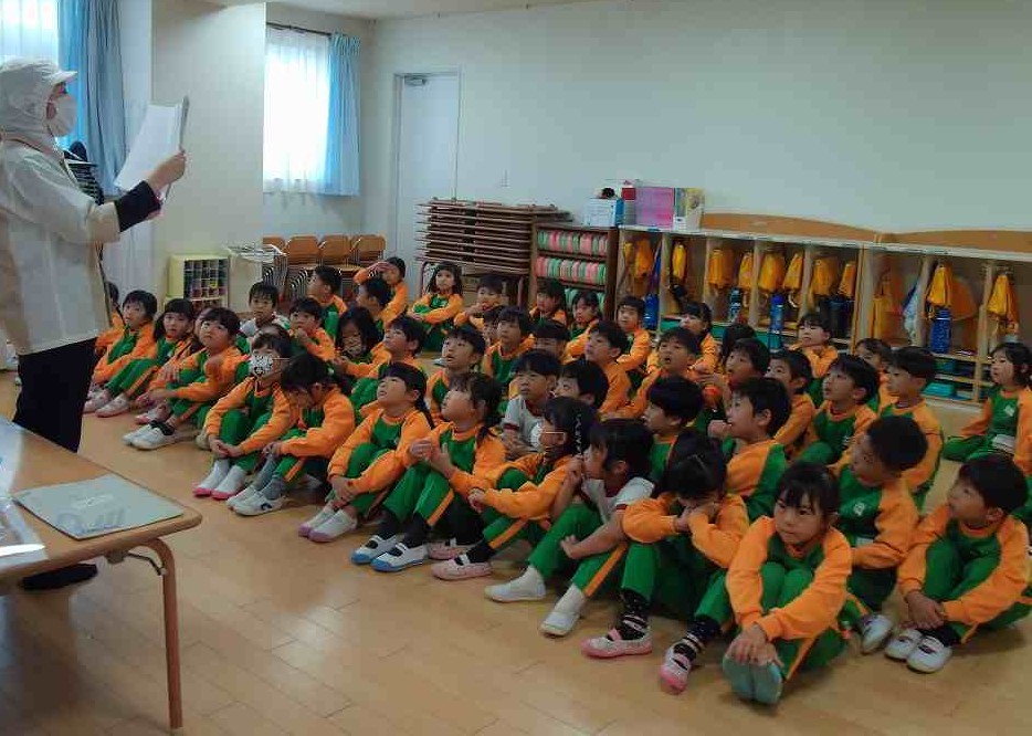正しい配膳の位置や明日の給食で出る栗についてのお話を給食さんから教えていただきましたよ☆
