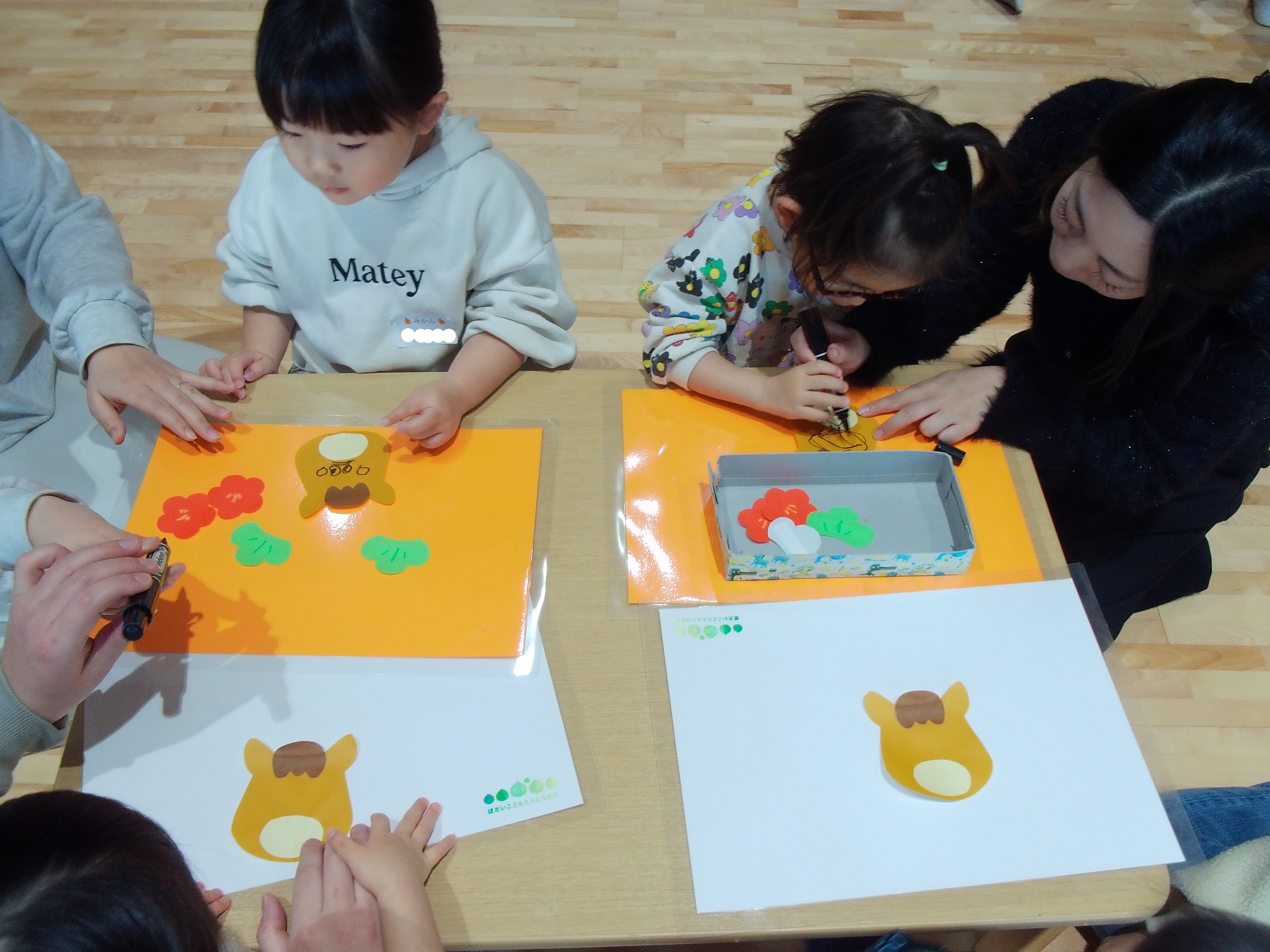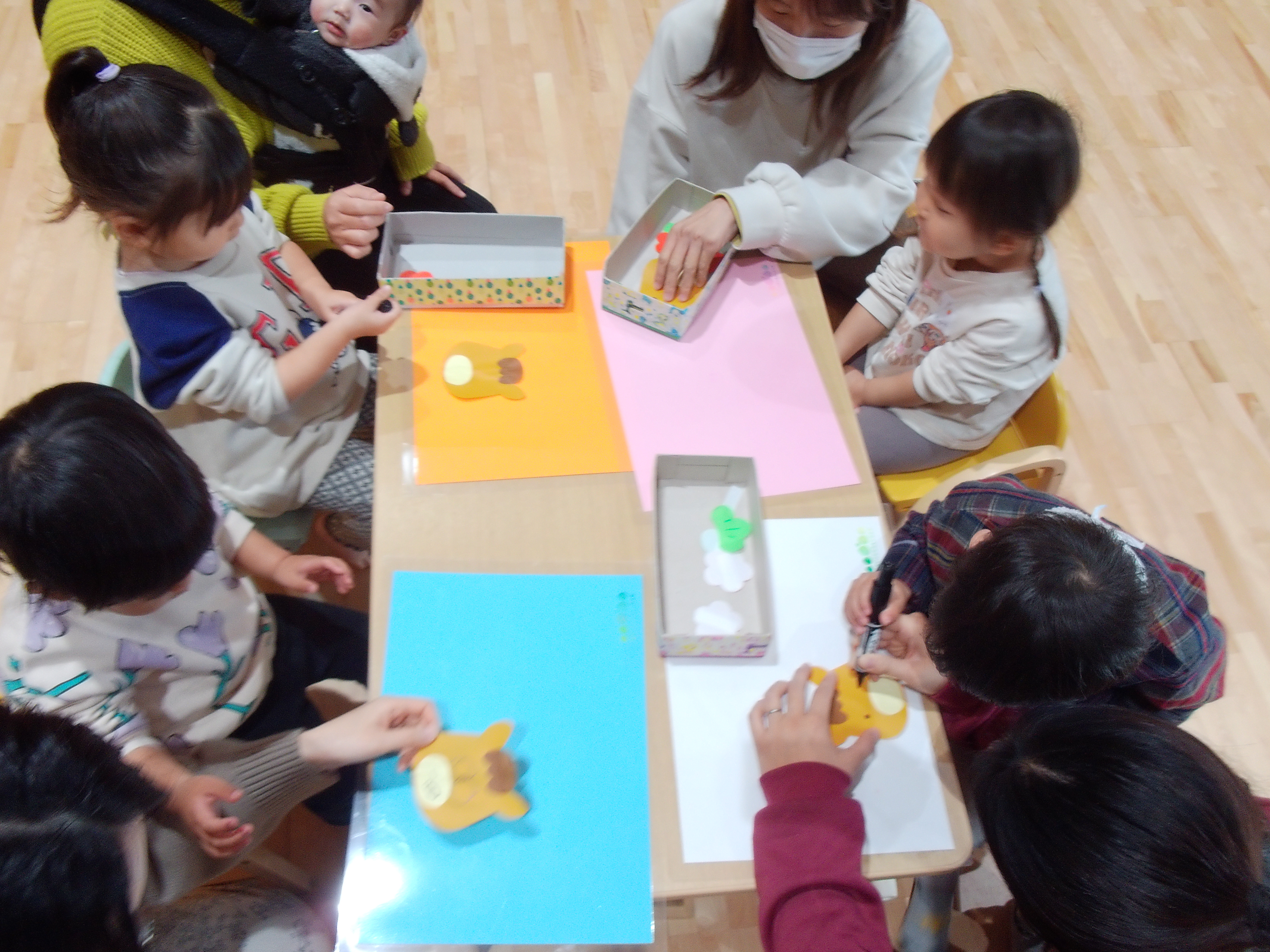 制作の箱を配ると「うま!!」と興味津々のみかん組さんのお友だち!
