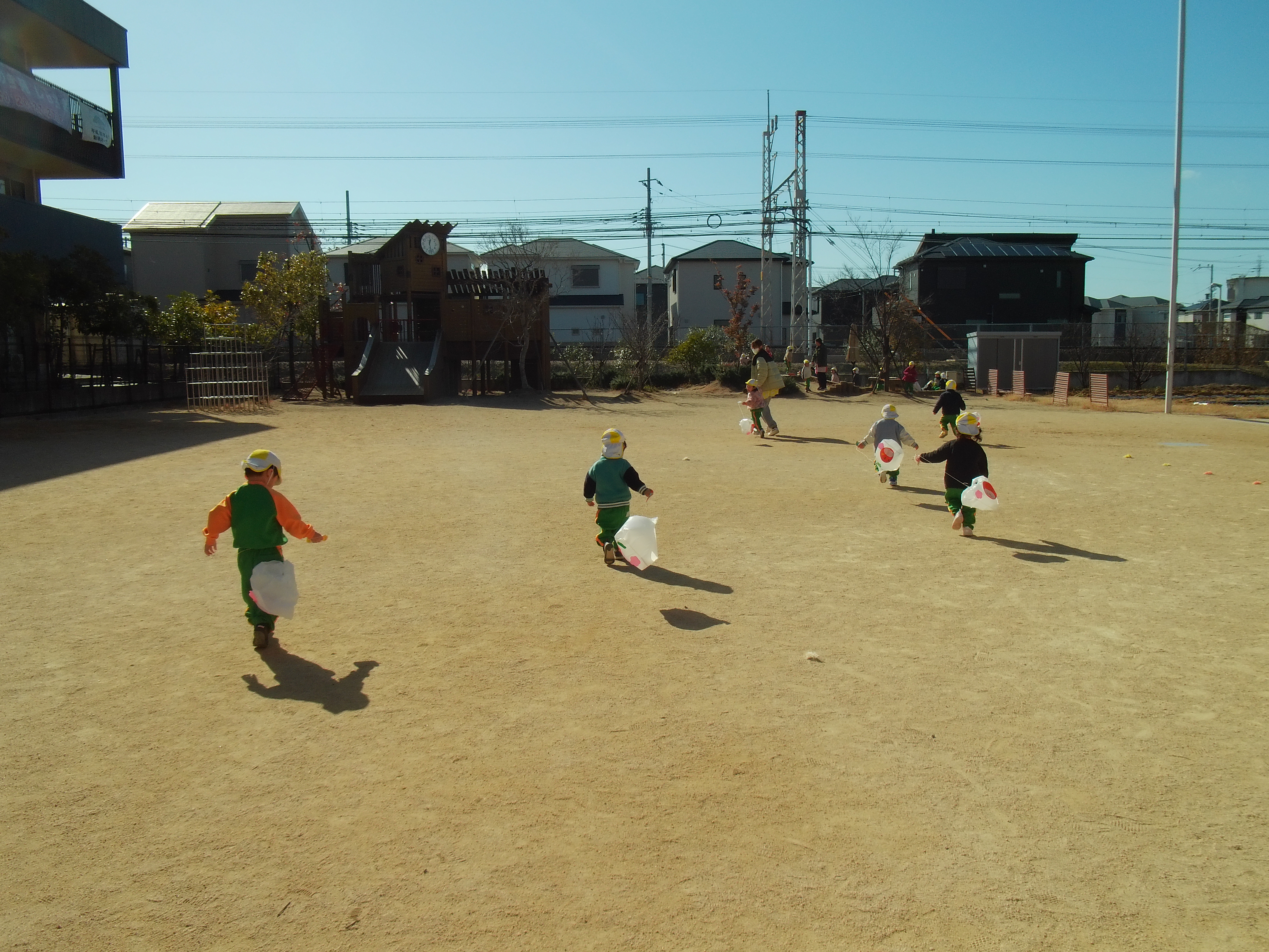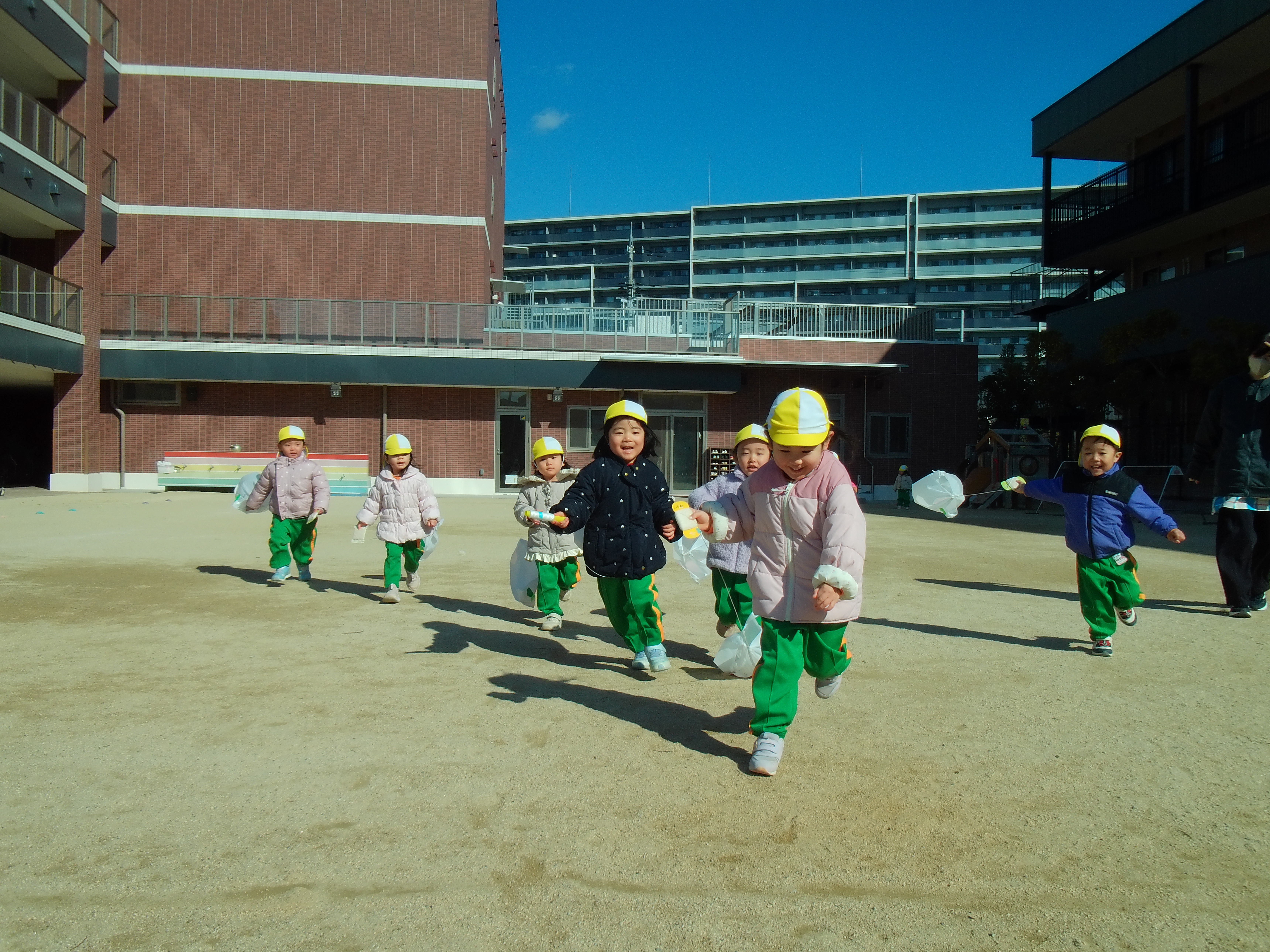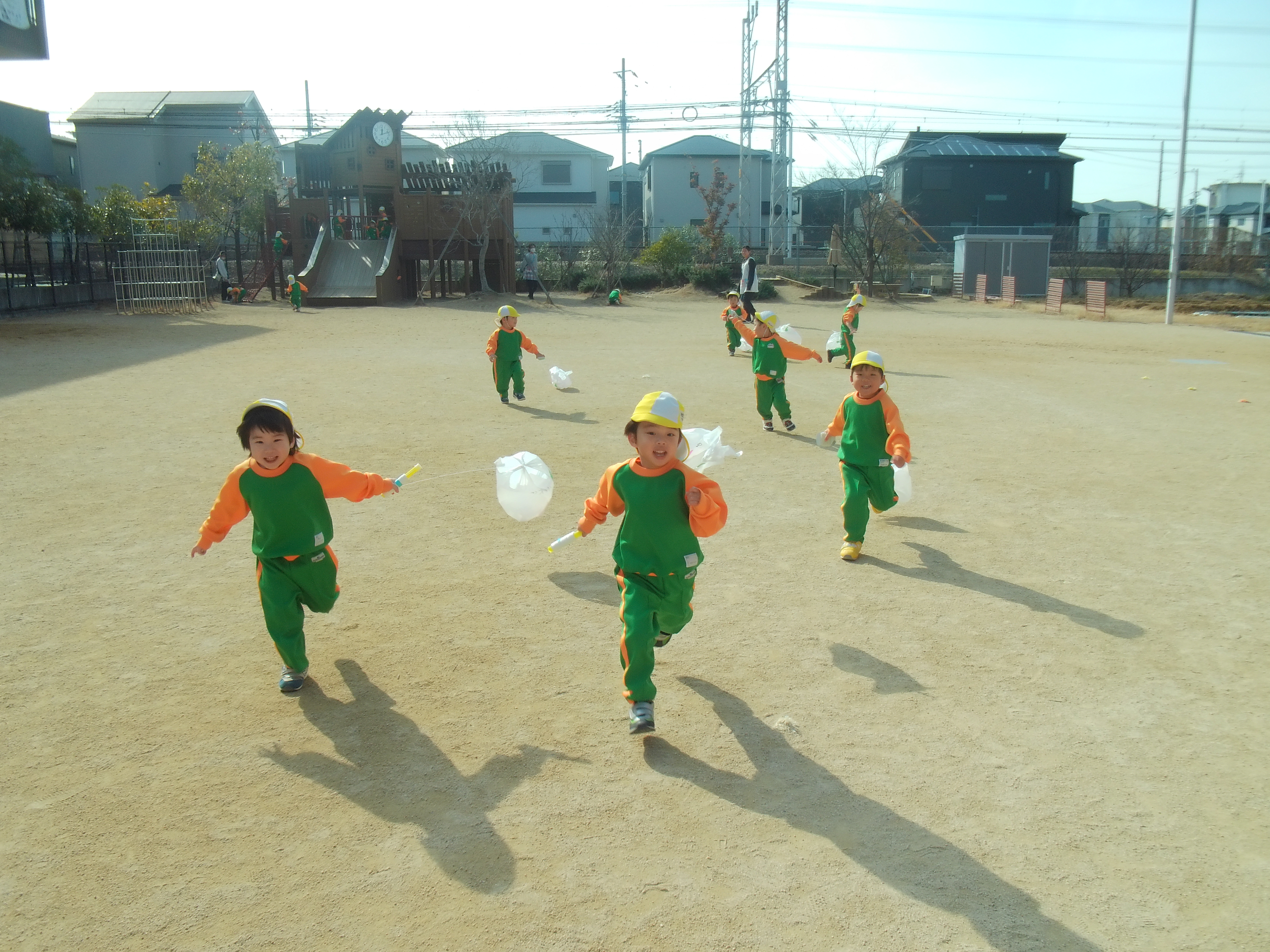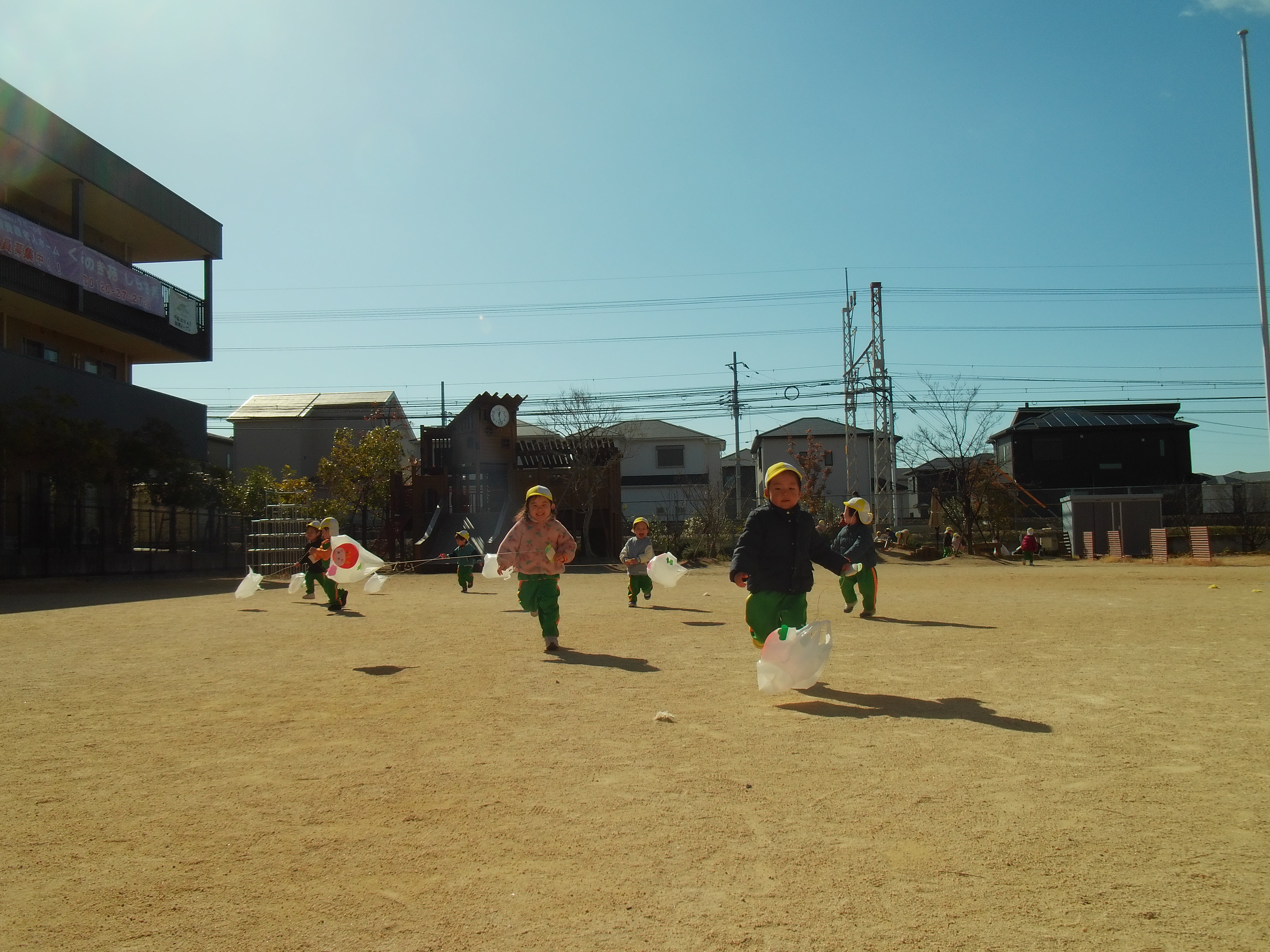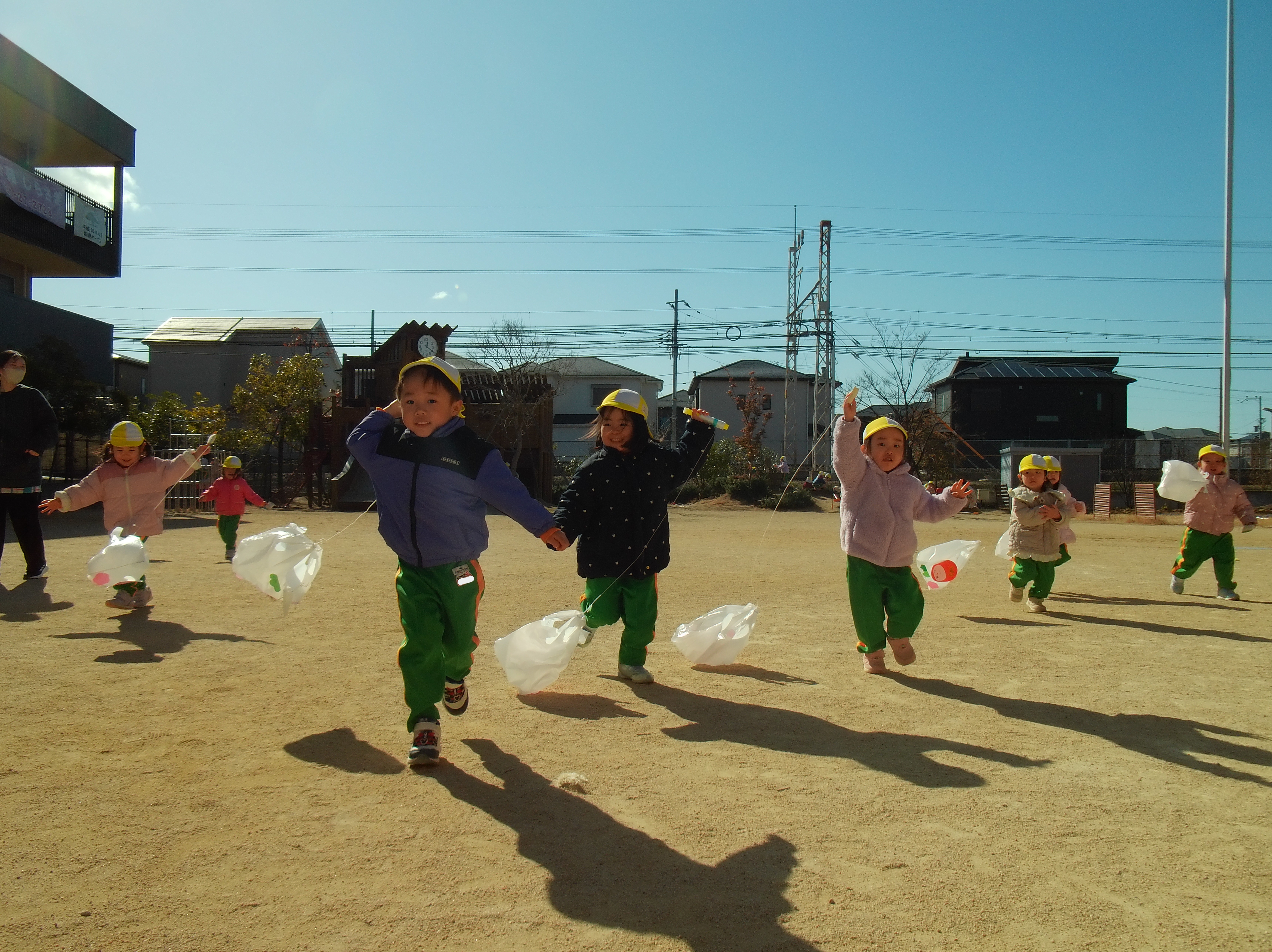 お友だちと一列に並んで「よーいドン」の合図で全力で走り出し、凧があがっているかをチラチラ確認している子どもたちが可愛かったです^^♡