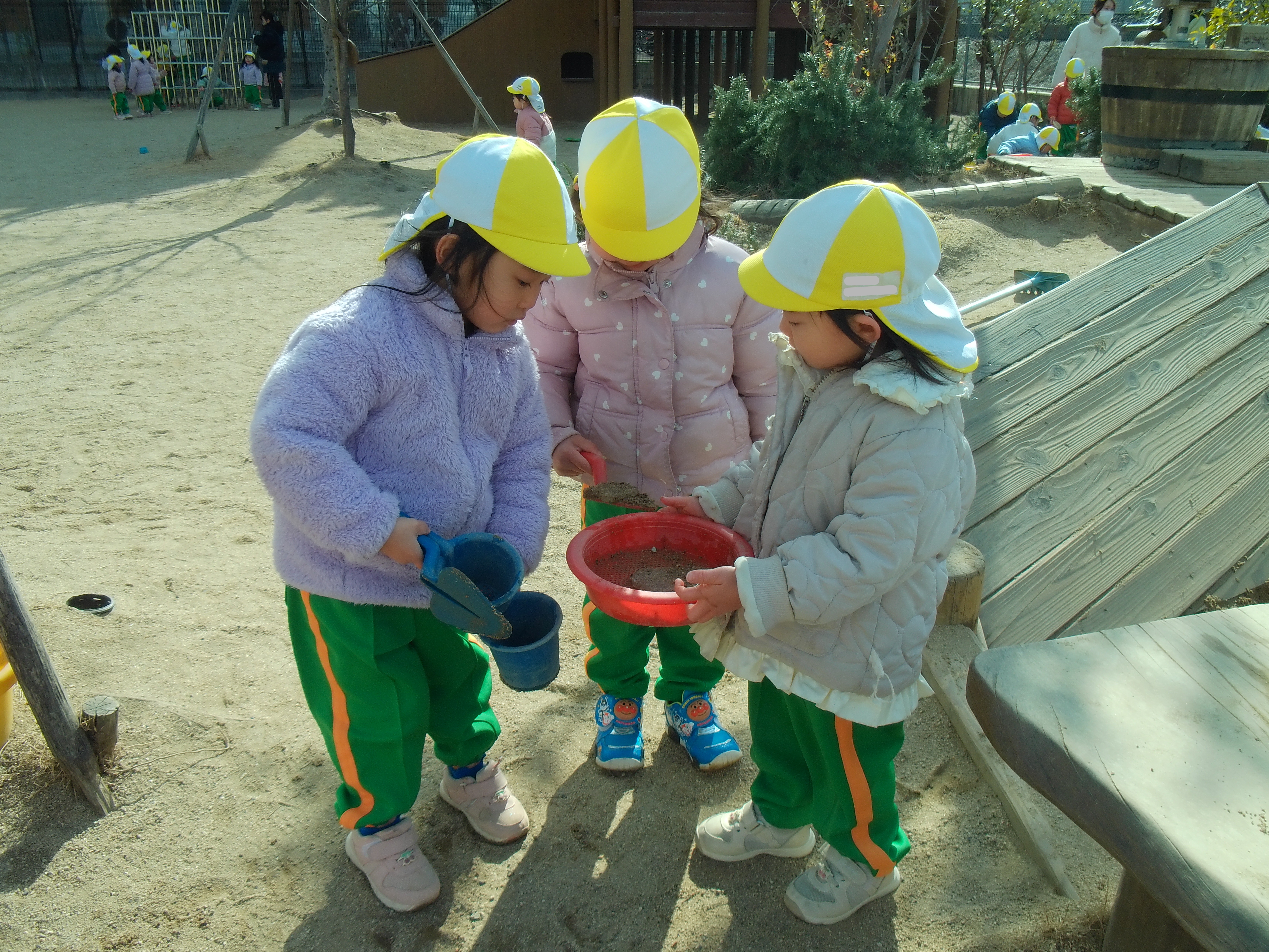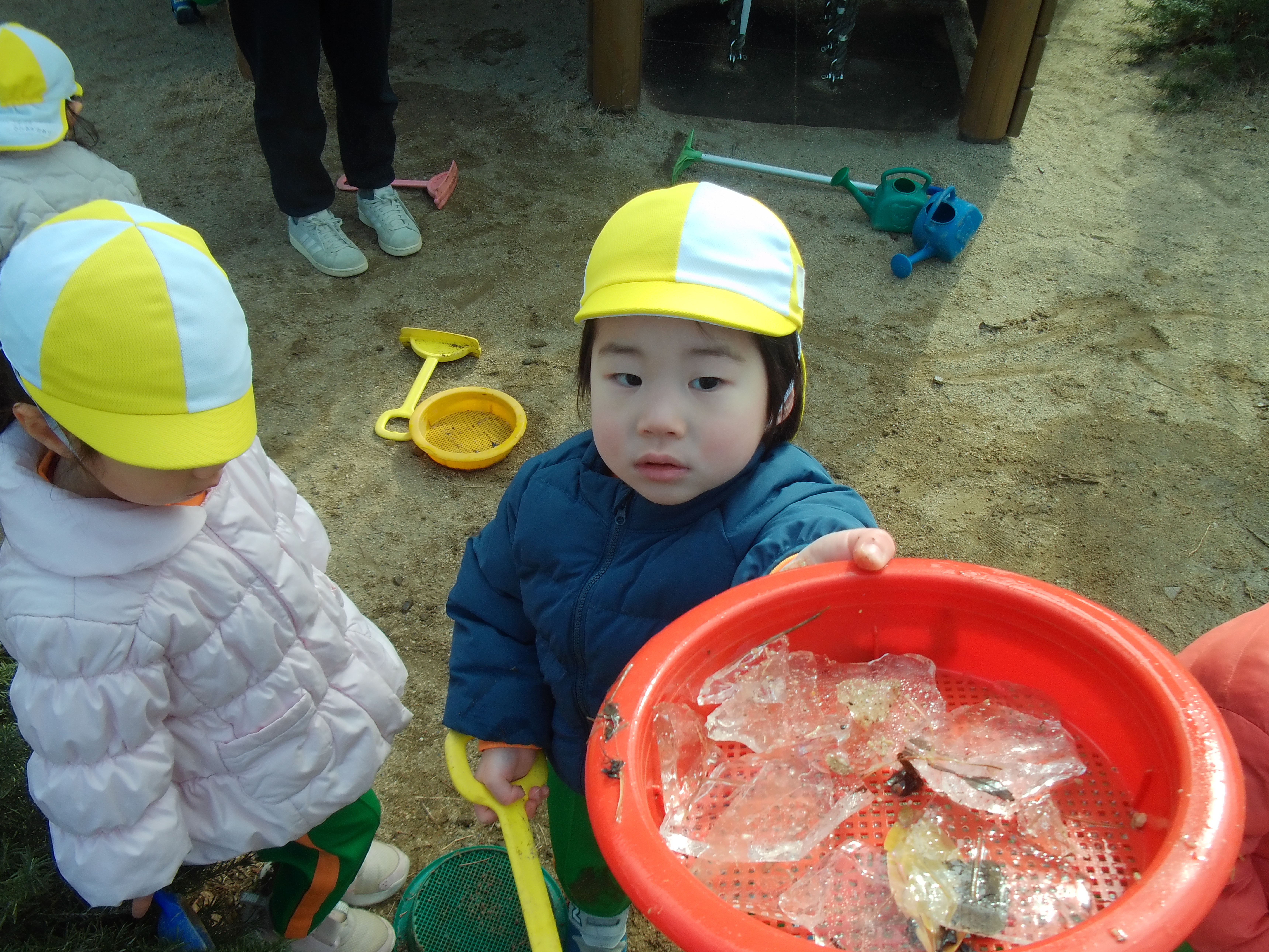 氷に手が届かないところは、自分達で考えてスコップや砂ふるいでとっている姿があり、とても成長を感じました☆