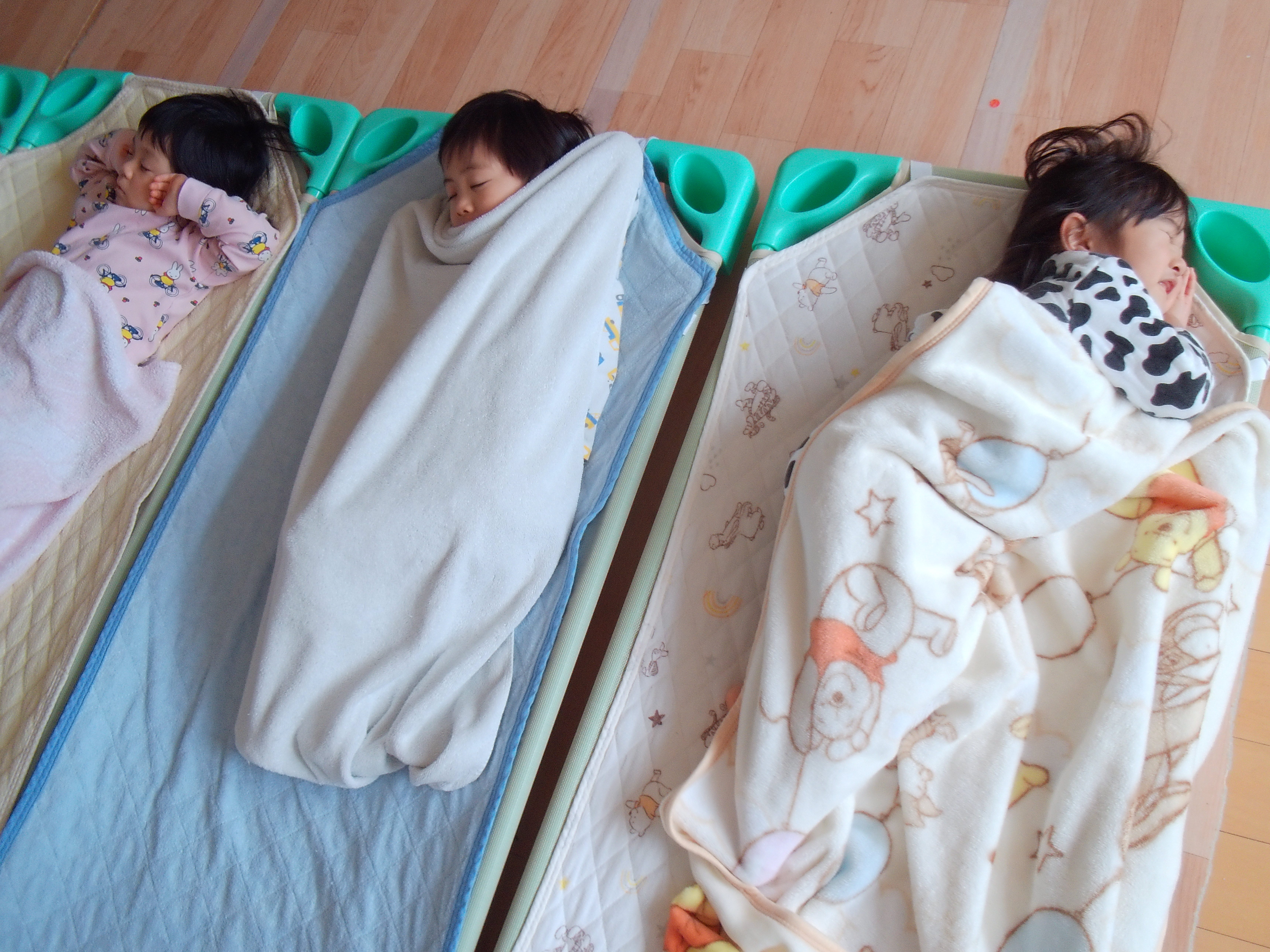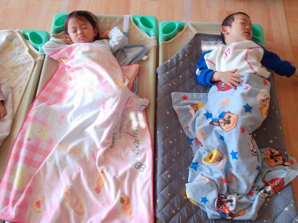 たっくさん遊んだあとは、パジャマに着替えてお昼寝タイムです!