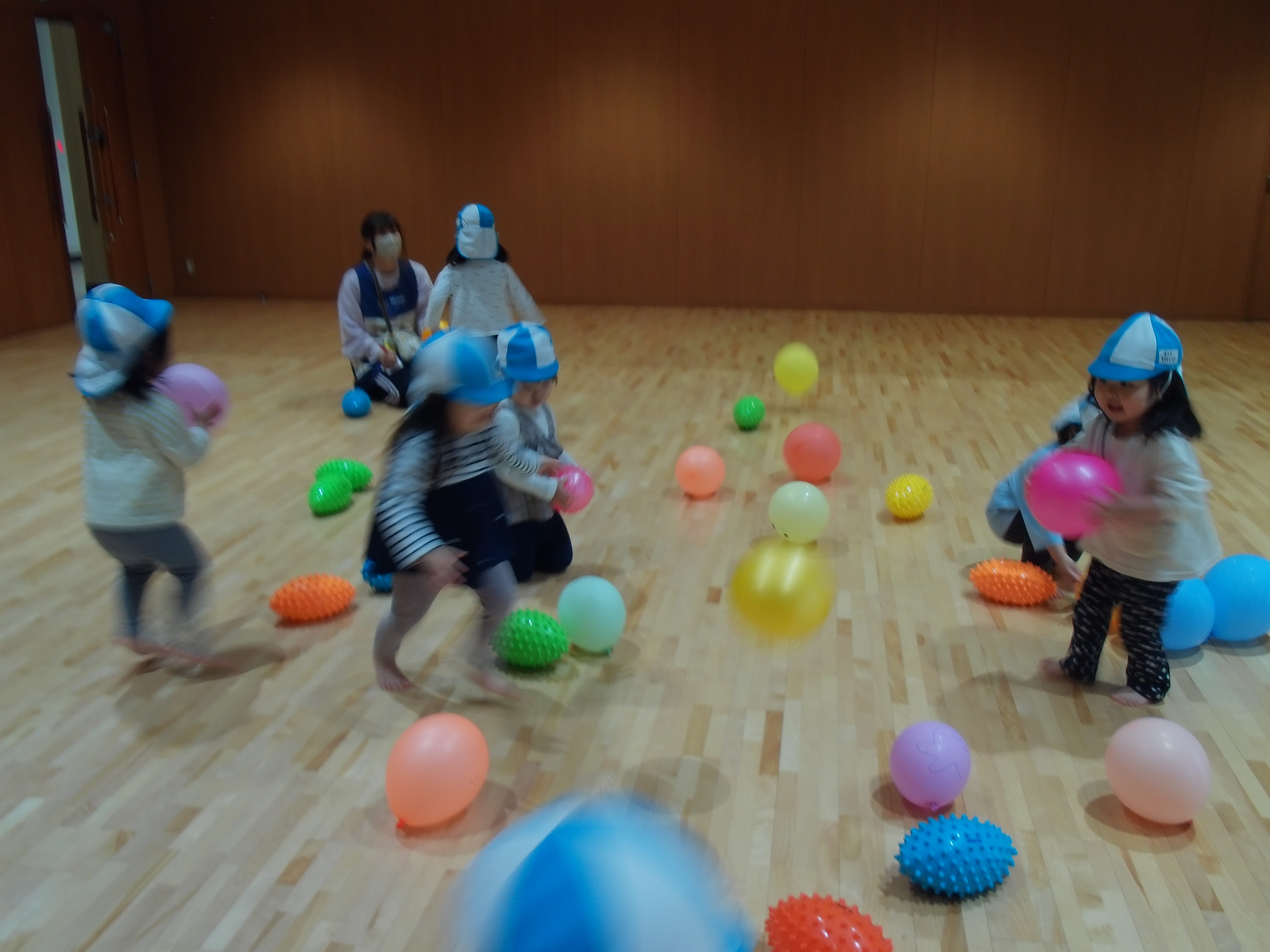 今日はお遊戯室でボールや風船で遊んだ時の様子をお届けします!