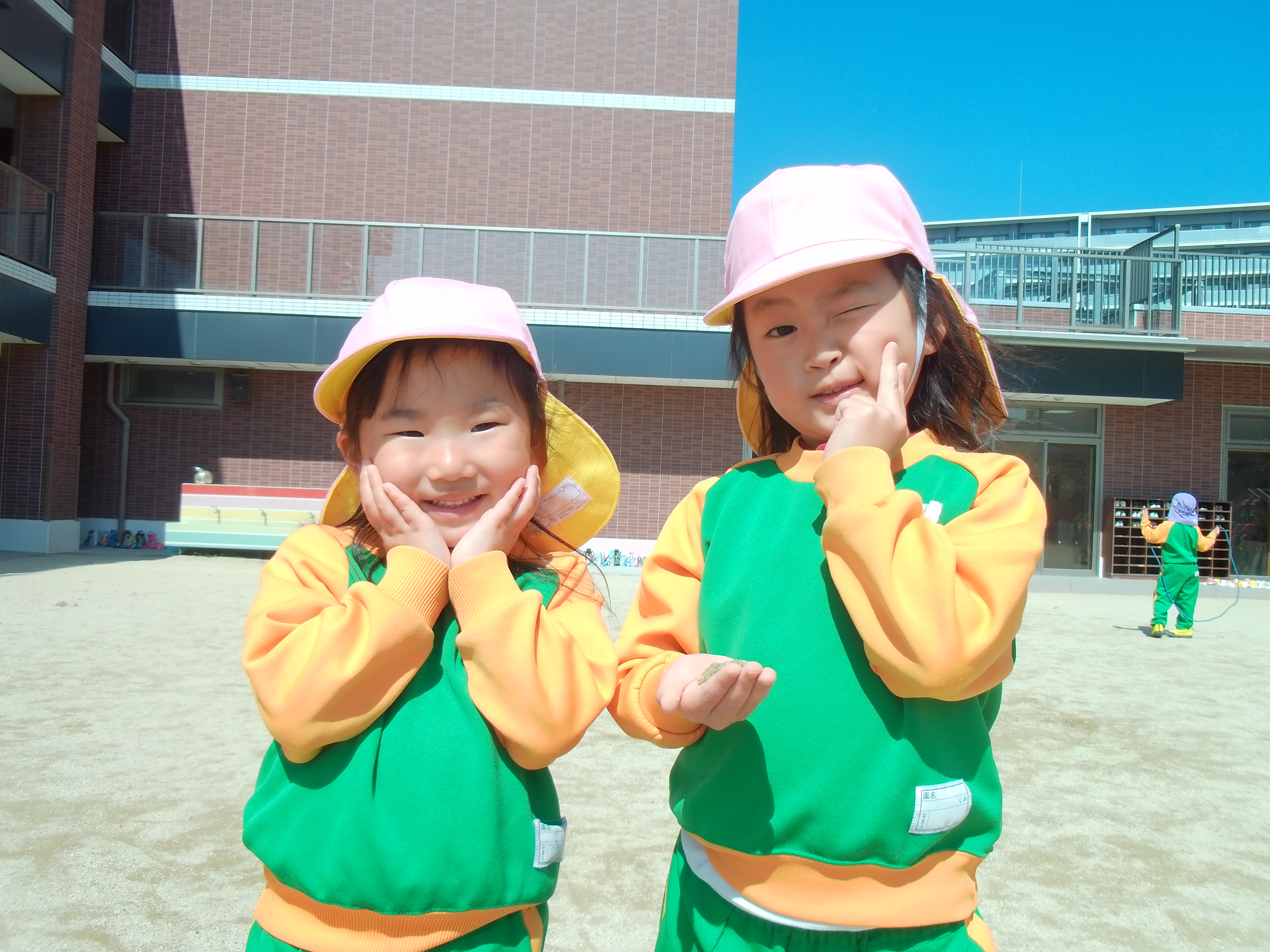沢山遊んだ後は給食をお腹いっぱい食べ、園庭へ!カメラを持っていると、「写真撮ってー!」と色んな所から声が聞こえてきました♡