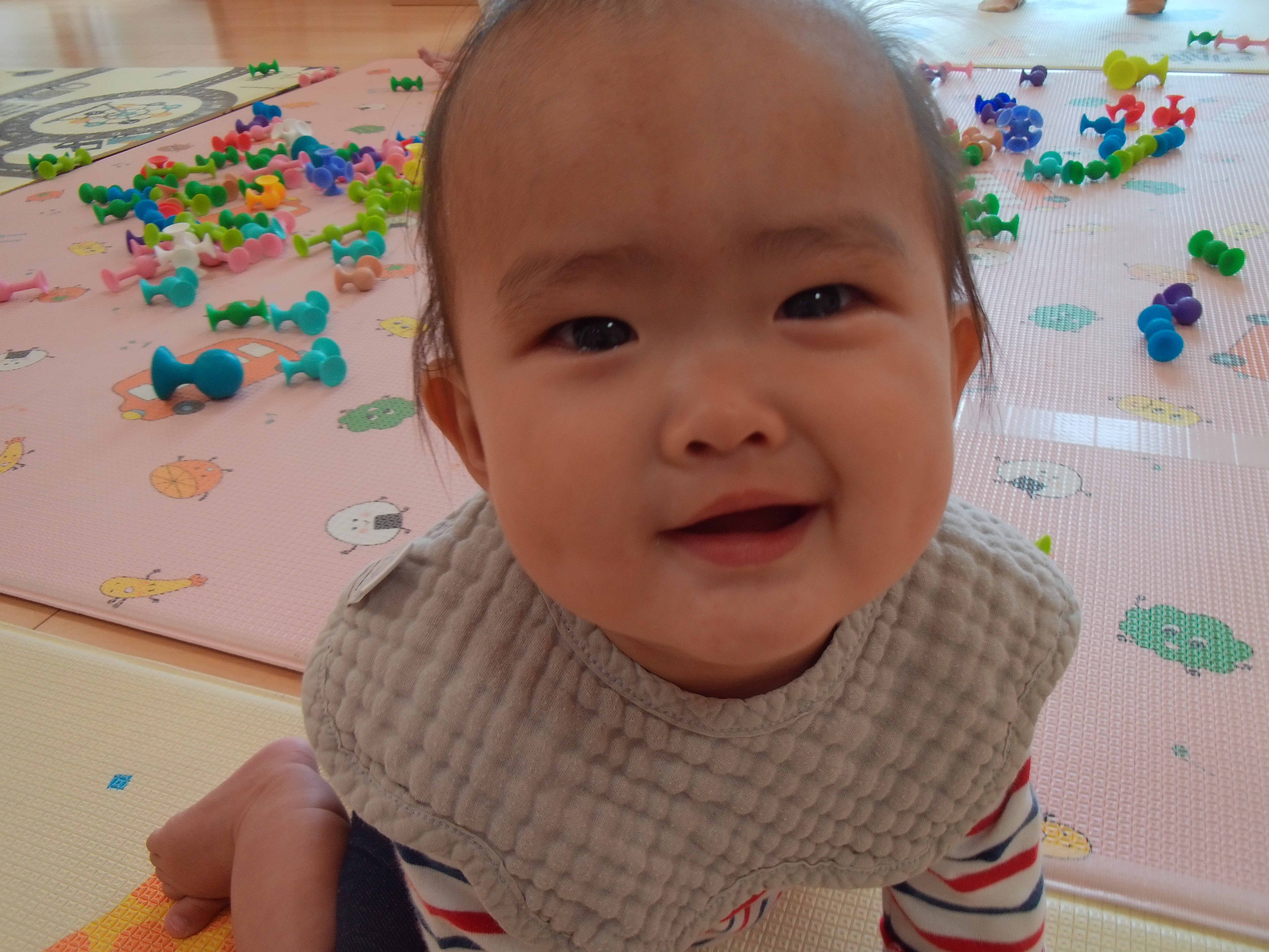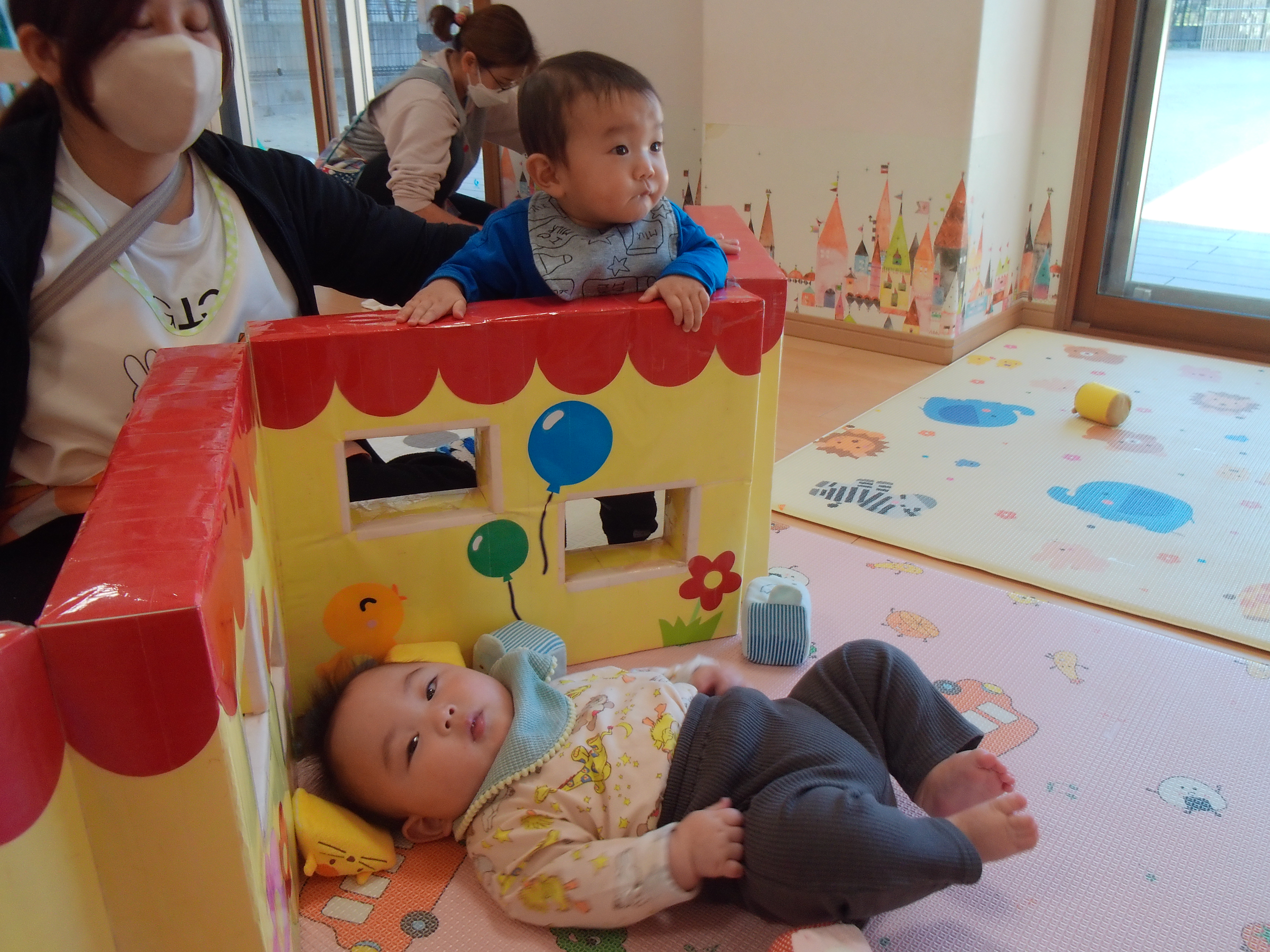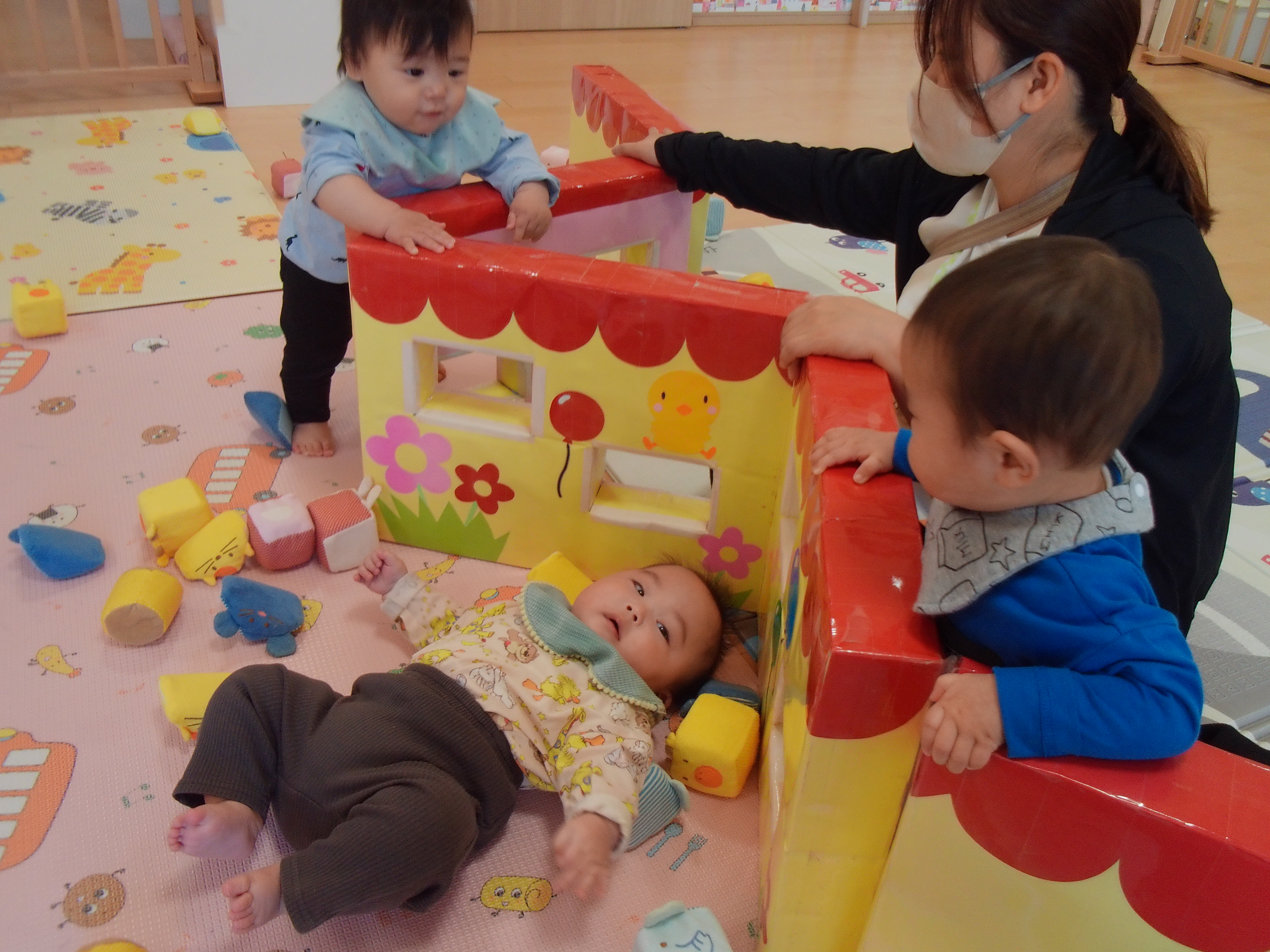 初めは新しい場所に緊張して涙が出ていた子どもたちも少しずつ落ち着き、お友達や玩具に興味津々!