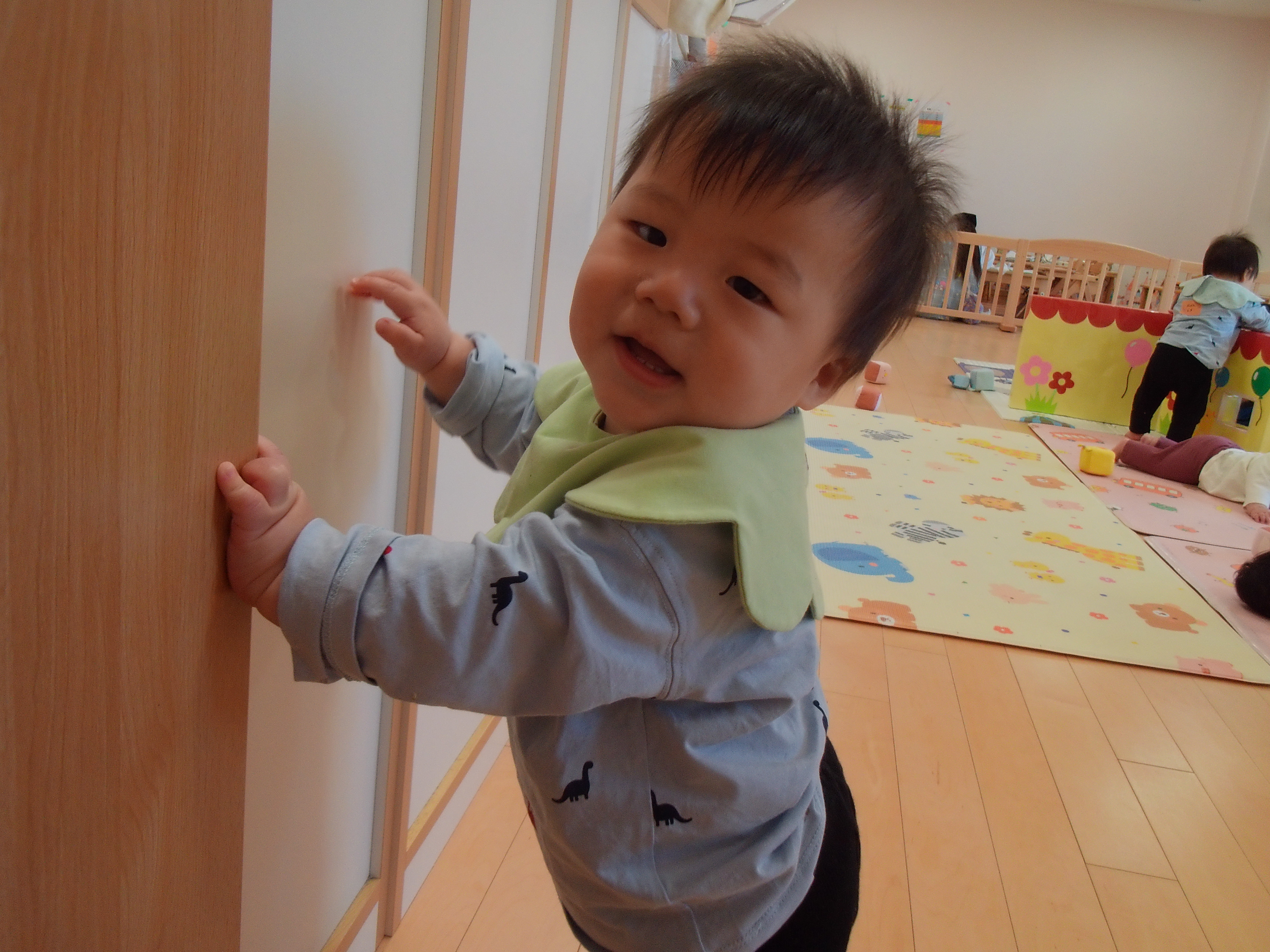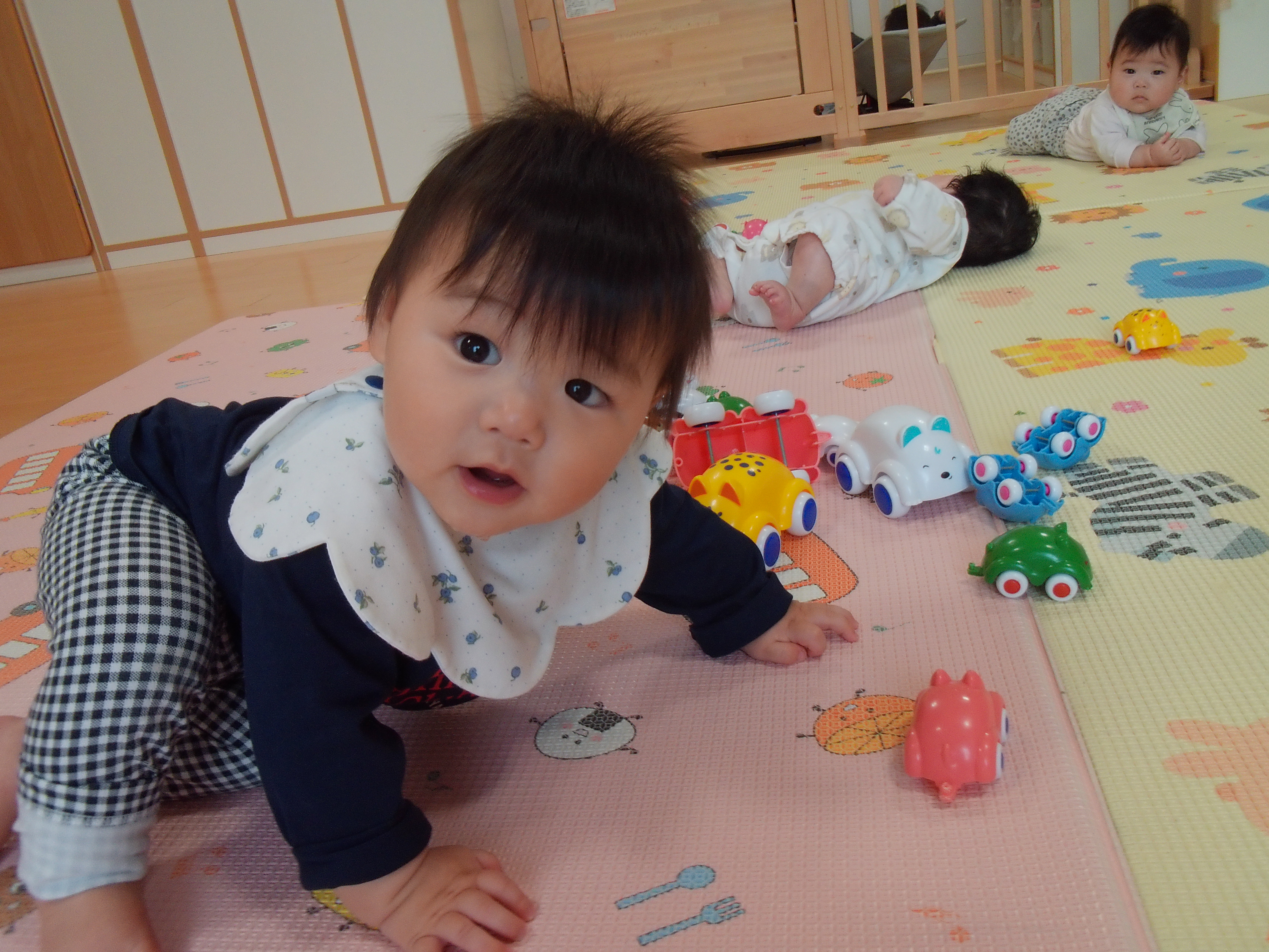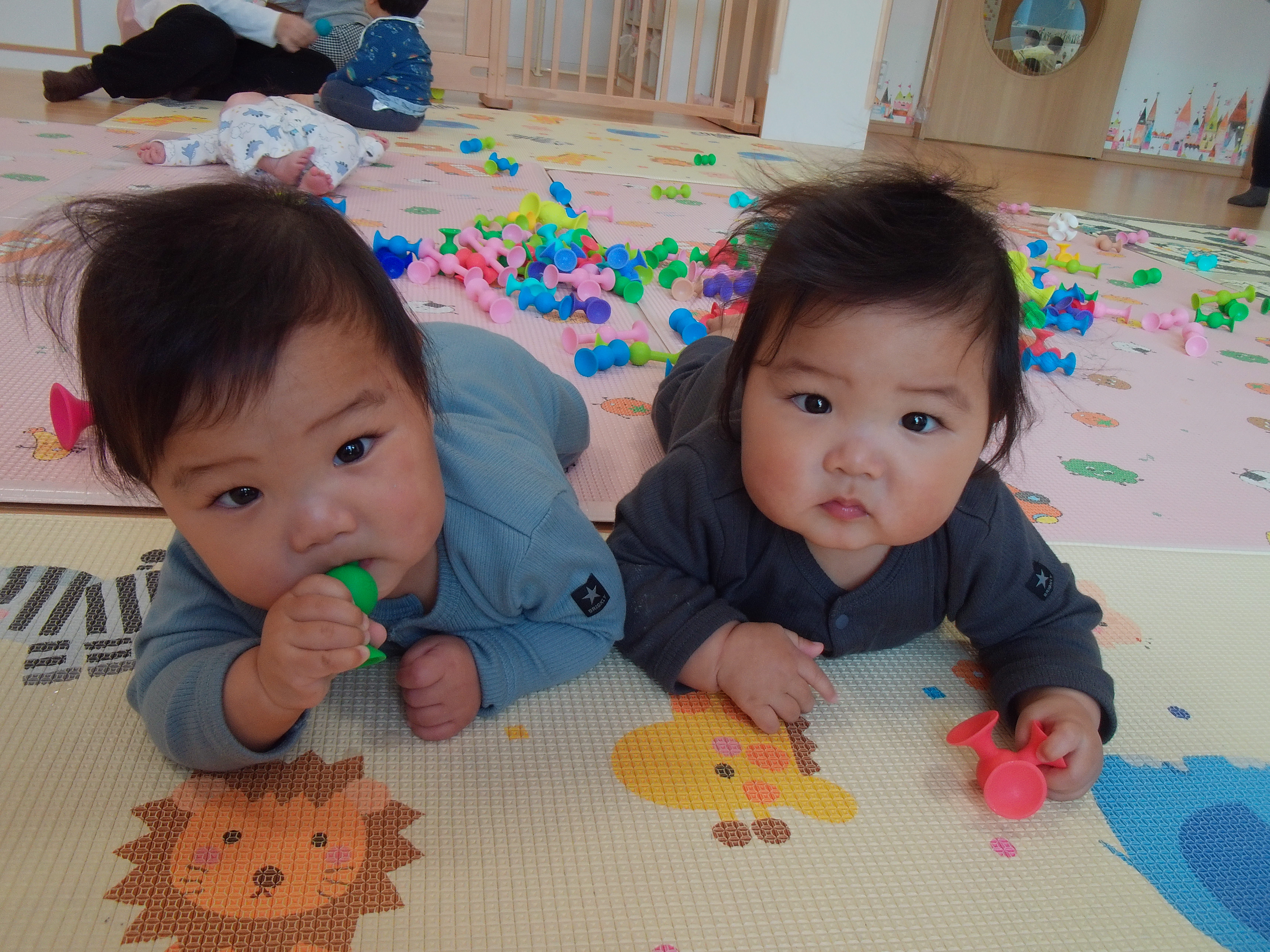 初めは新しい場所に緊張して涙が出ていた子どもたちも少しずつ落ち着き、お友達や玩具に興味津々!