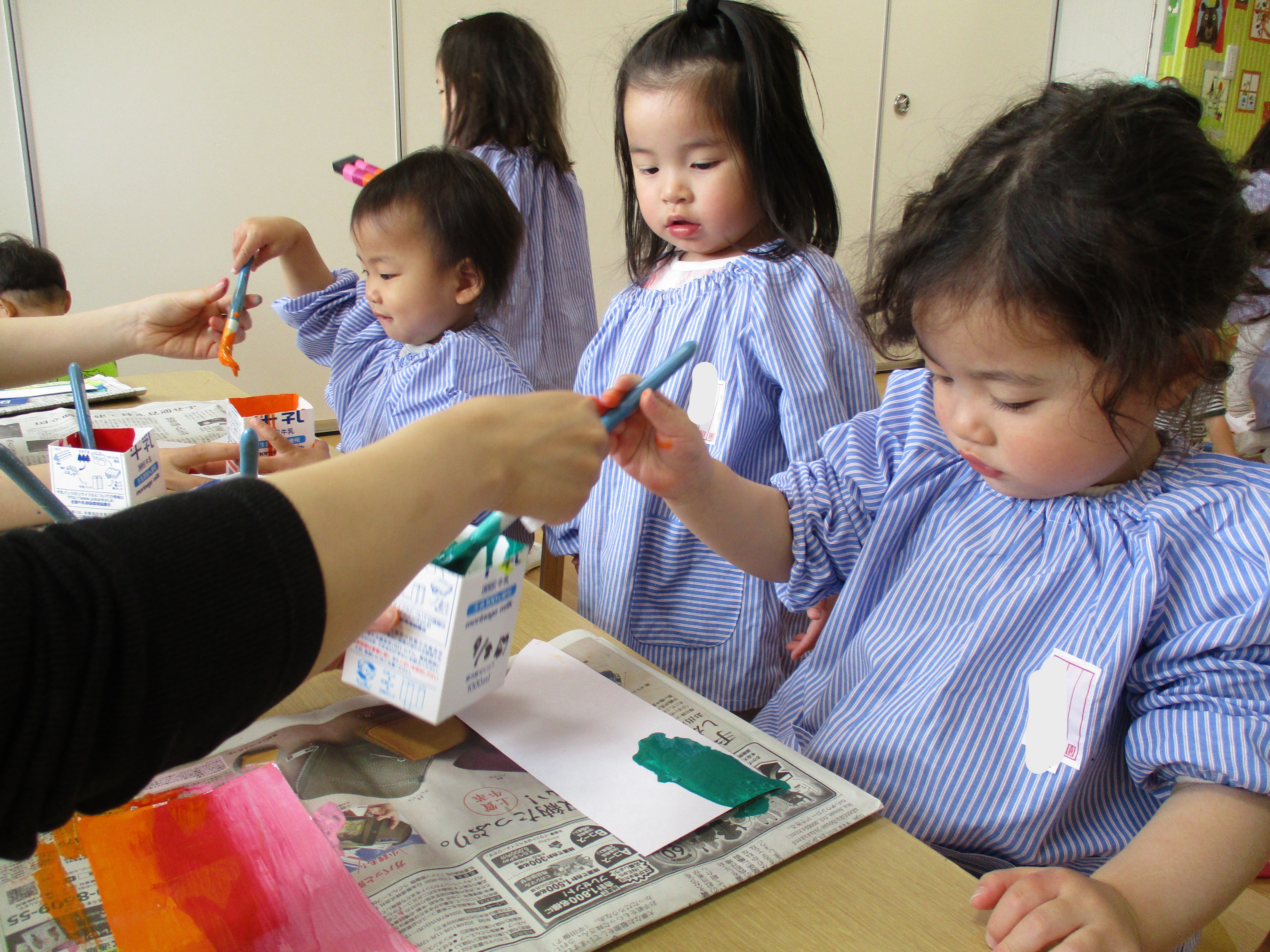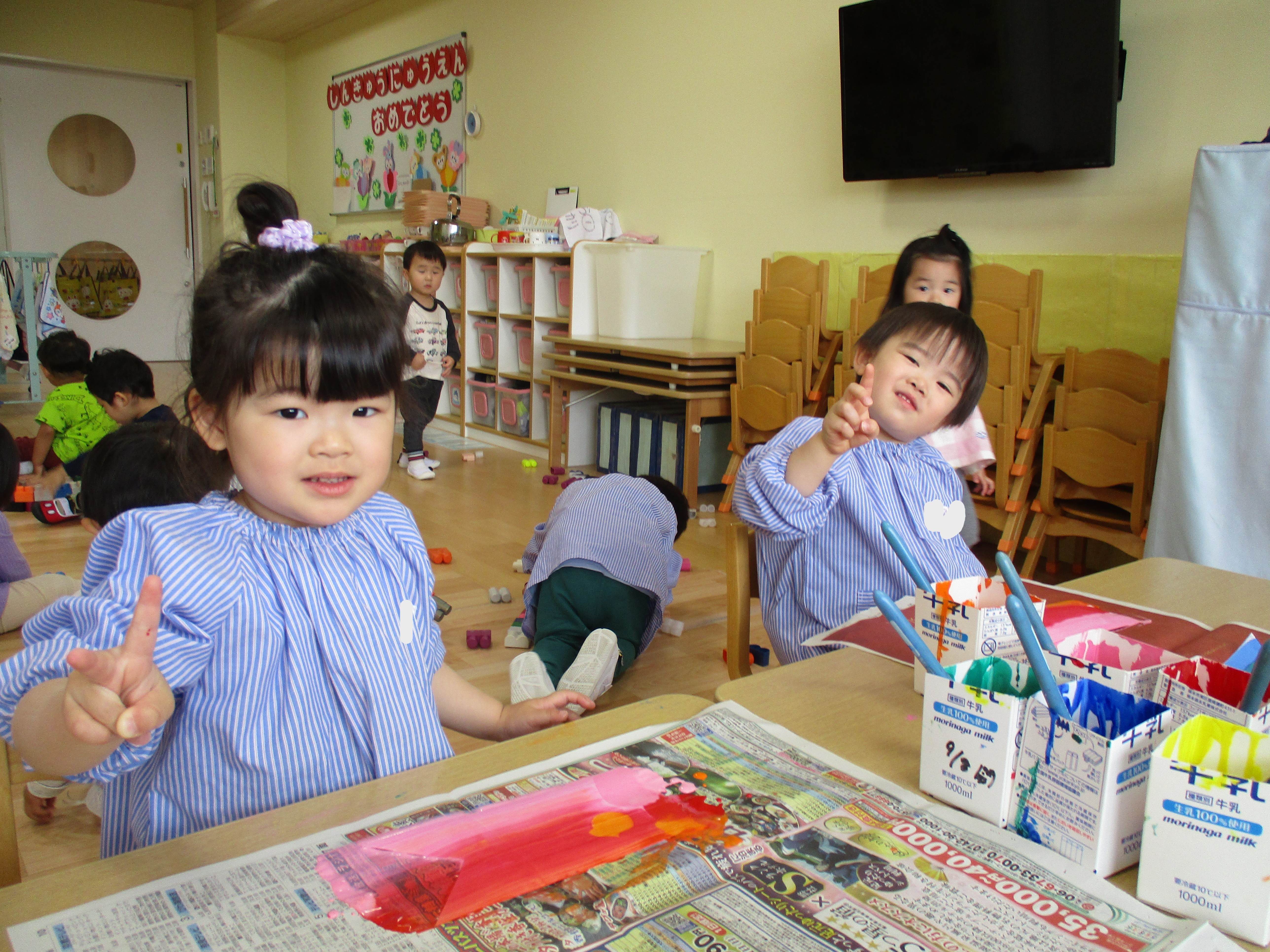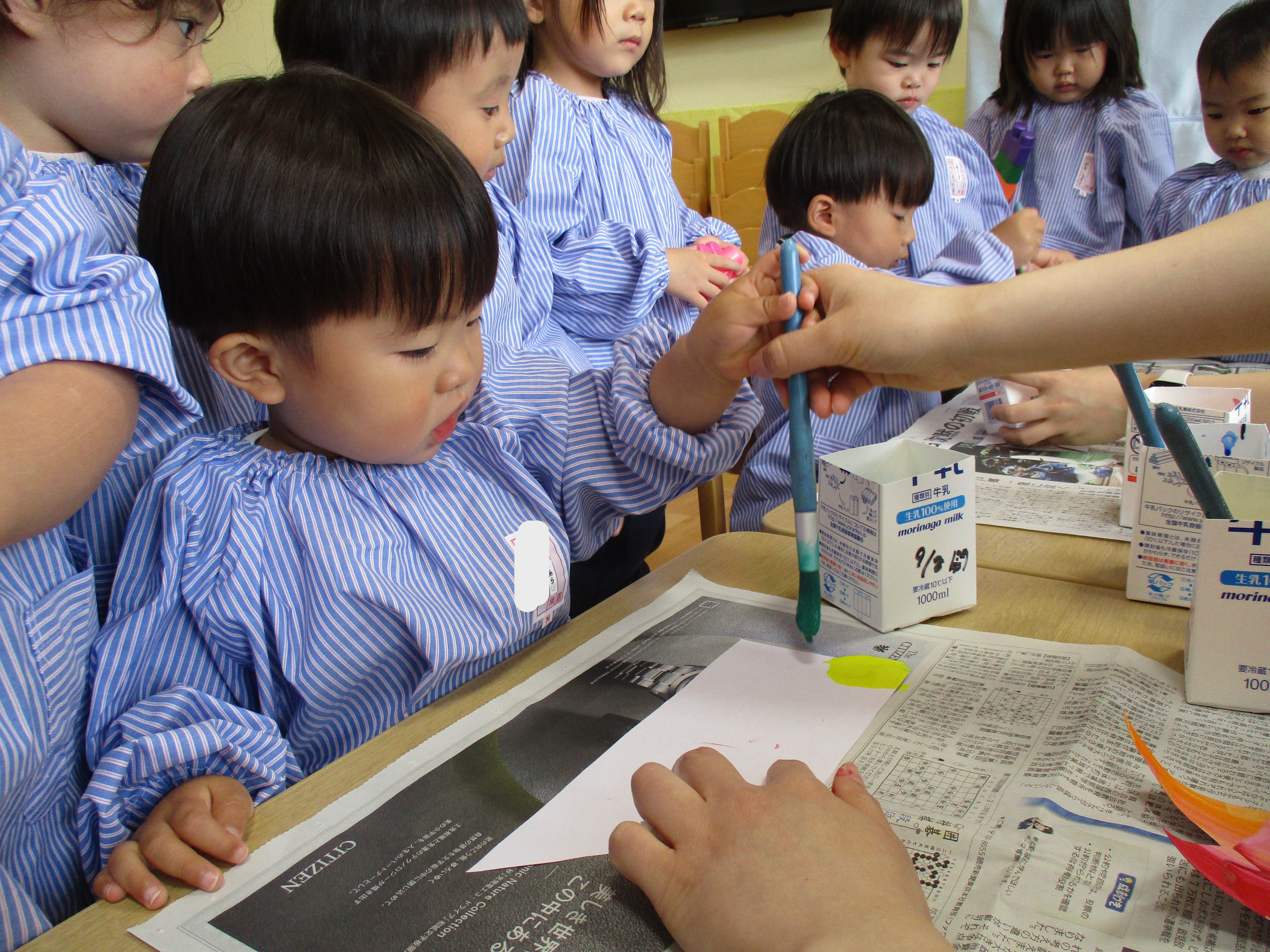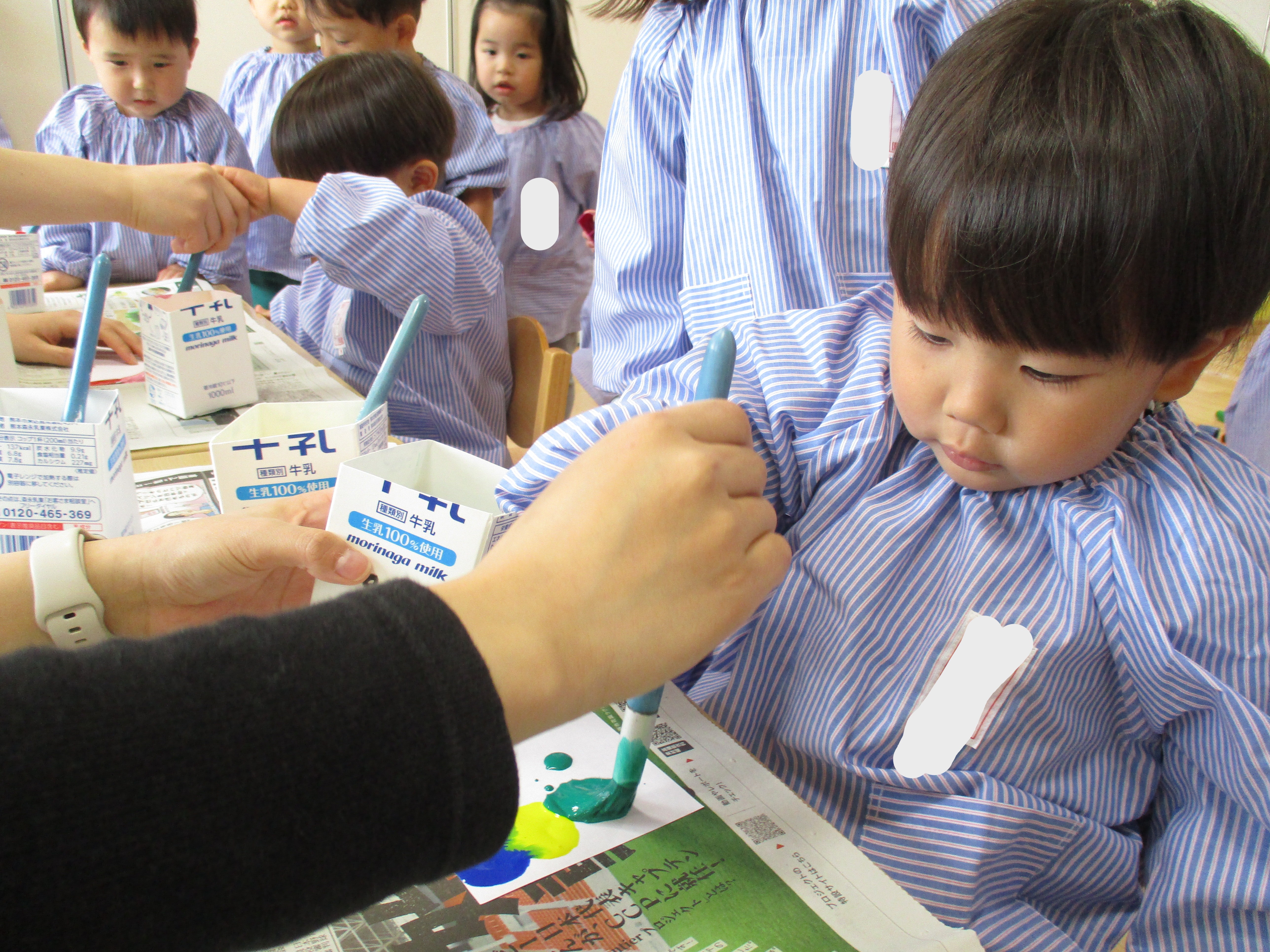 自分で色をのせてスワイプアートをしたのですが、色が広がっている様子を見て、「わあ!」「すごーい♡」と感動している子どもたちが可愛かったです♡