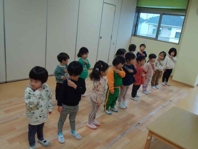 プール指導では、体操の先生と水のかけあいっこをしたり、プールの真ん中にロープを張り、ワニ歩きでぐるぐる回ったりしました!ロープの部分は頭を低くしないと通れないので、水に潜って通る子や出来るだけ顔が水につかないように顎を上げて通ろうとする子など様々でした^^