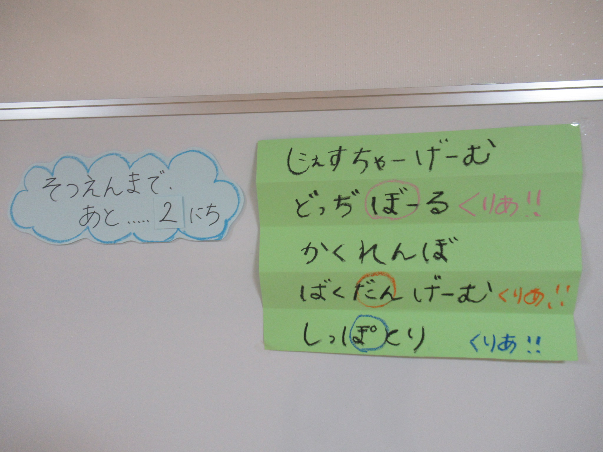 もうすぐ卒園…ということで、最後の思い出作りで、お当番グループに分かれ、クラス全員でやりたい遊びを提案してもらいました!そして、皆で決めた遊びを先週から一日ひとつずつやっています♪