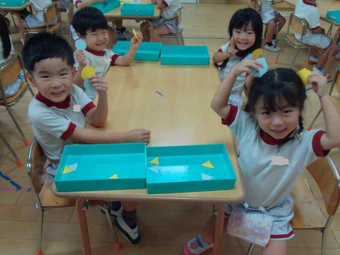 自分のマークに座り、自分で帽子を被るお友だちも増えてきました☆
